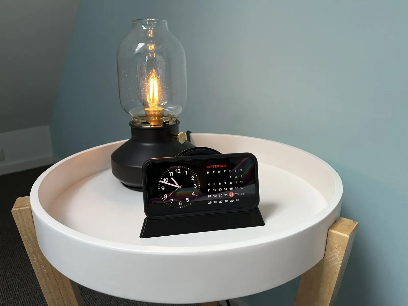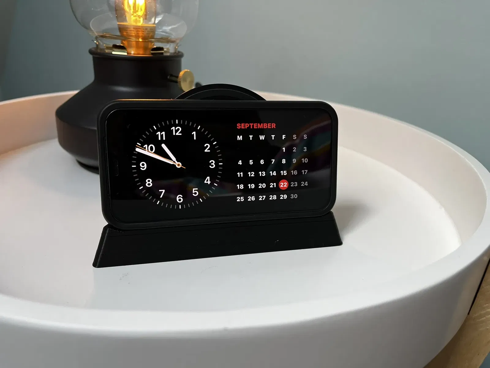 Dock sạc đẹp cho đầu giường để sử dụng chế độ chờ mới. Không phải là một từ tính, chỉ là trọng lực ...