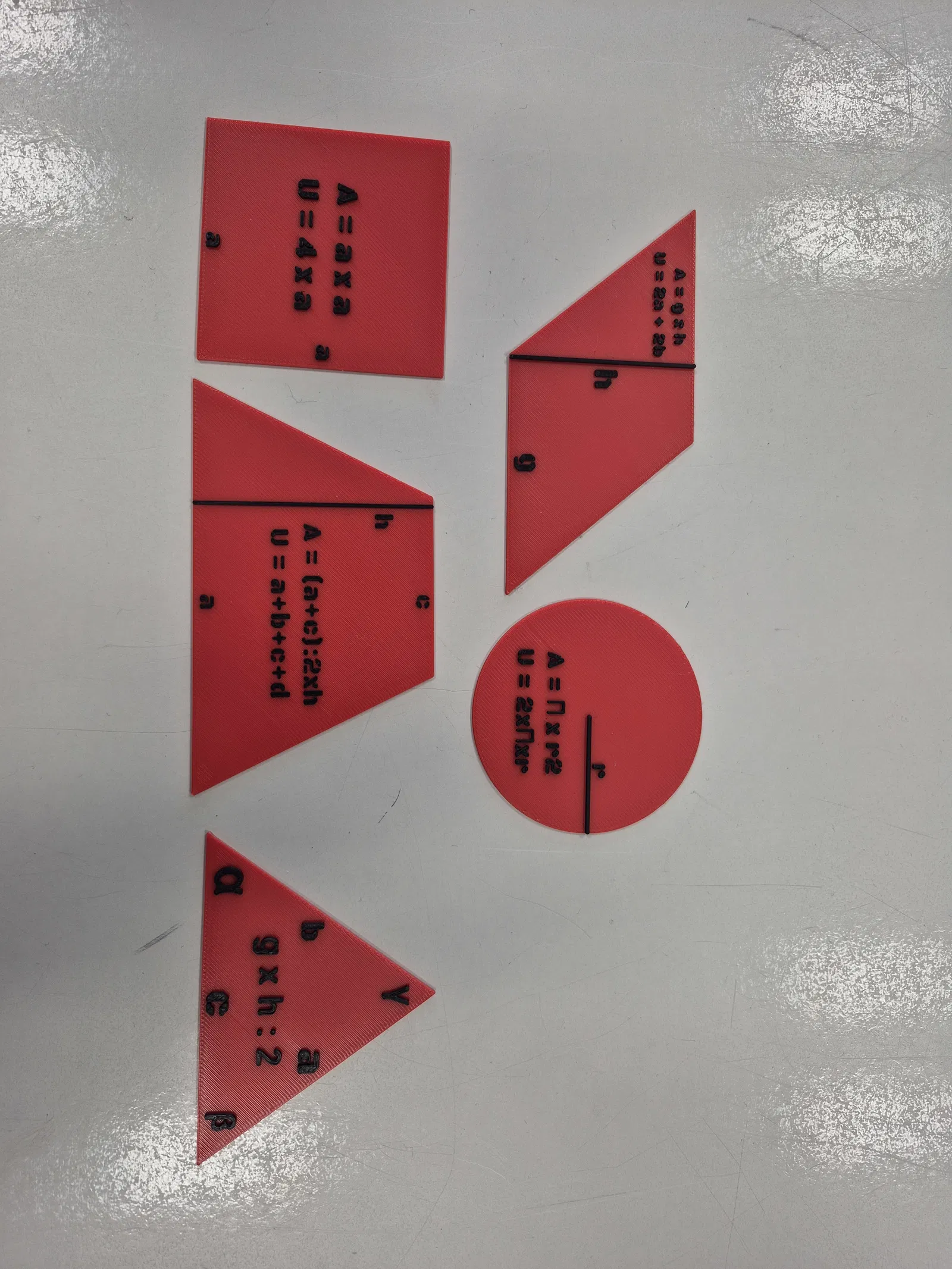 Bạn đang tìm kiếm một công cụ hỗ trợ trực quan cho việc giảng dạy hoặc tự học toán hình học? Bộ mô hình hình học in 3D này chính là giải pháp tuyệt vời giúp các khái niệm toán học khô khan trở nên sinh động và dễ hiểu hơn bao giờ hết. Với thiết kế phẳng, các hình khối cơ bản được in kèm theo công thức tính diện tích (A) và chu vi (U) ngay trên bề mặt, giúp người học ghi nhớ nhanh chóng thông qua việc quan sát và thực hành cầm nắm trực tiếp.