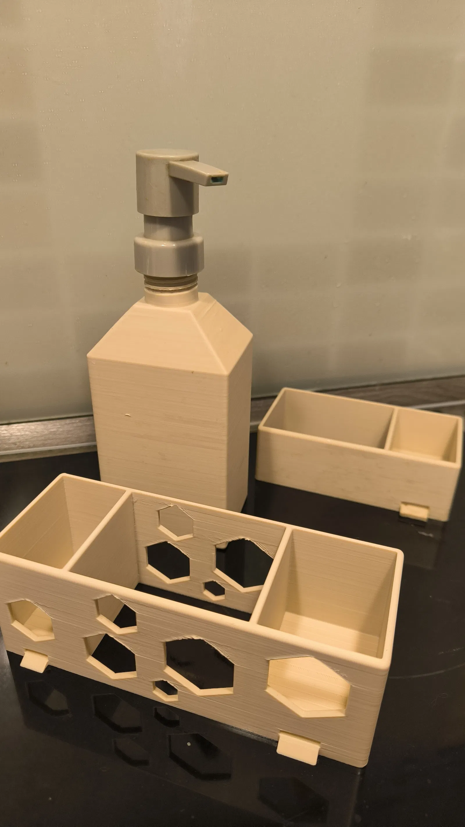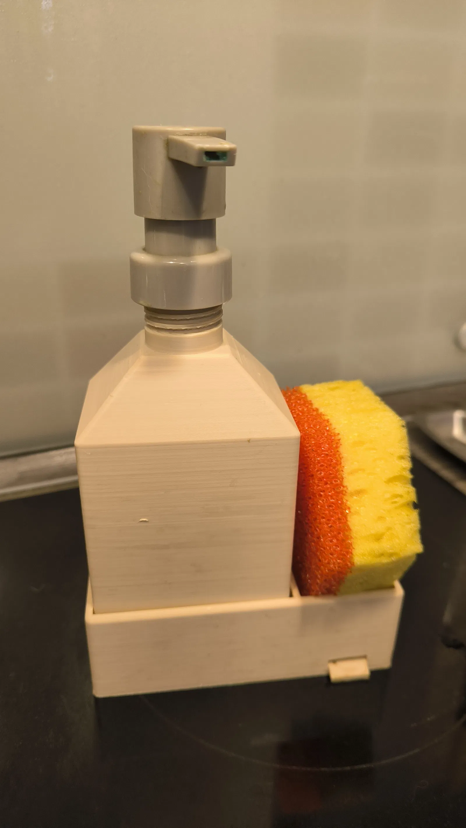 Mẫu bình đựng xà phòng tiện lợi tích hợp sẵn ngăn chứa miếng rửa chén. Thiết kế bao gồm đầu bơm 27mm, dễ dàng tùy biến cho dầu gội hoặc thay thế cho các loại chai xà phòng hiện có trong gia đình bạn.