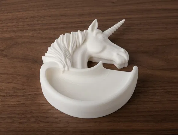 Mẫu in này có hình đầu kỳ lân chi tiết với bộ bờm mềm mại và chiếc sừng xoắn ốc, được tích hợp vào phần đế uốn cong. Sản phẩm được thiết kế như một chiếc giá đỡ đa năng, giúp bạn sắp xếp gọn gàng những món đồ nhỏ. Bạn có thể đặt nó trên bàn làm việc để đựng đồ linh tinh, dùng làm giá treo trang sức, hoặc đơn giản là một món đồ decor trang trí trên kệ. Phần đầu kỳ lân có những đường nét chi tiết tinh tế ở phần bờm, mang lại vẻ ngoài thần thoại cổ điển. Phần khay được thiết kế mịn và bo tròn, uốn cong phía trước để đựng bất cứ thứ gì bạn muốn. Đây là một thiết kế đơn giản, gọn gàng, phù hợp với nhiều phong cách phòng khác nhau mà không quá cầu kỳ.