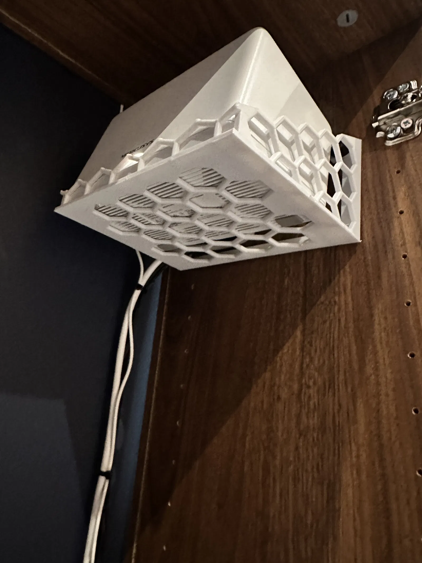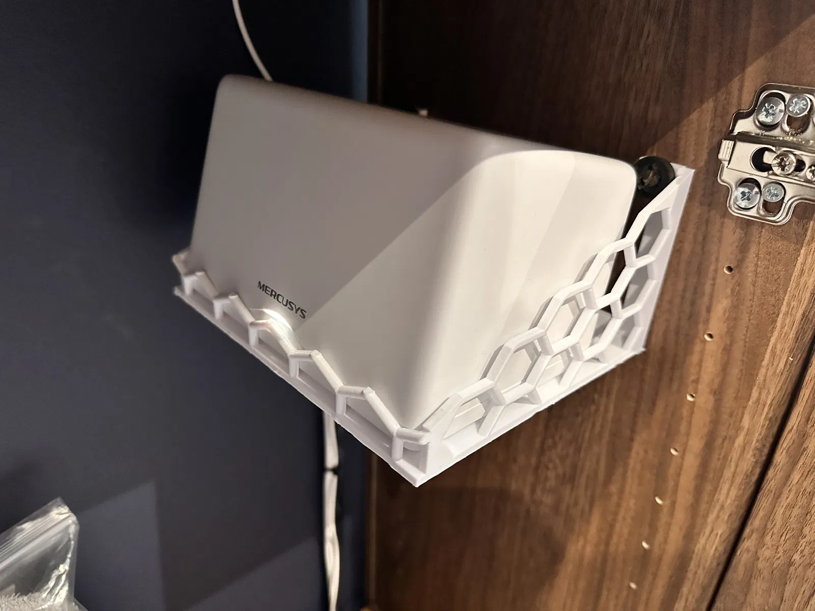 Thiết kế của giá treo này được tối ưu hóa với các lỗ thông hơi dạng tổ ong (hexagonal pattern) cực kỳ tinh tế. Không chỉ giúp sản phẩm trông hiện đại, cấu trúc này còn đảm bảo khả năng thoát nhiệt tối đa cho thiết bị Wi-Fi trong quá trình vận hành liên tục. Nhờ đó, bộ phát sóng của bạn luôn giữ được sự ổn định, không bị nóng máy, giúp duy trì tốc độ truyền tải dữ liệu ở mức tối ưu nhất cho ngôi nhà thông minh của bạn.