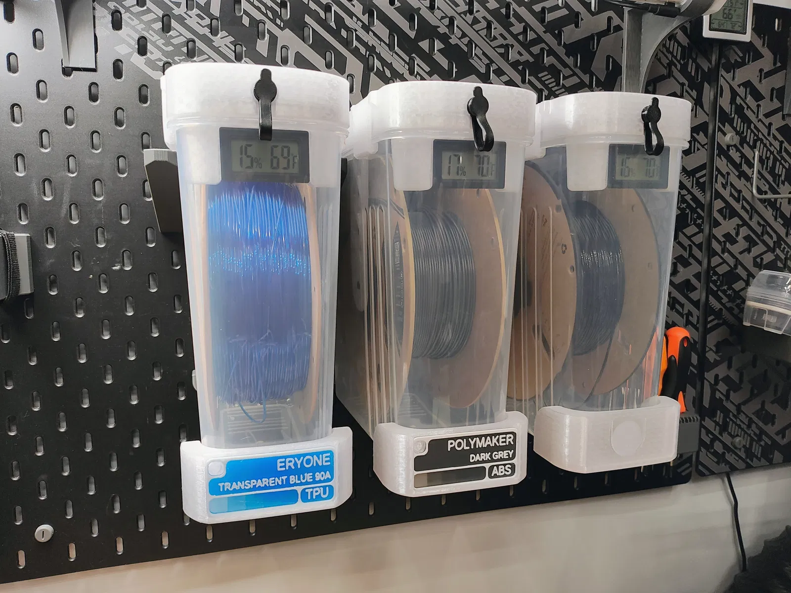 Bộ giá đỡ chuyên dụng để treo các hộp đựng khô (drybox) Filament Storage 2026 lên bảng treo IKEA Skadis. Thiết kế chuẩn xác, giúp tối ưu không gian lưu trữ filament của bạn một cách gọn gàng và khoa học.