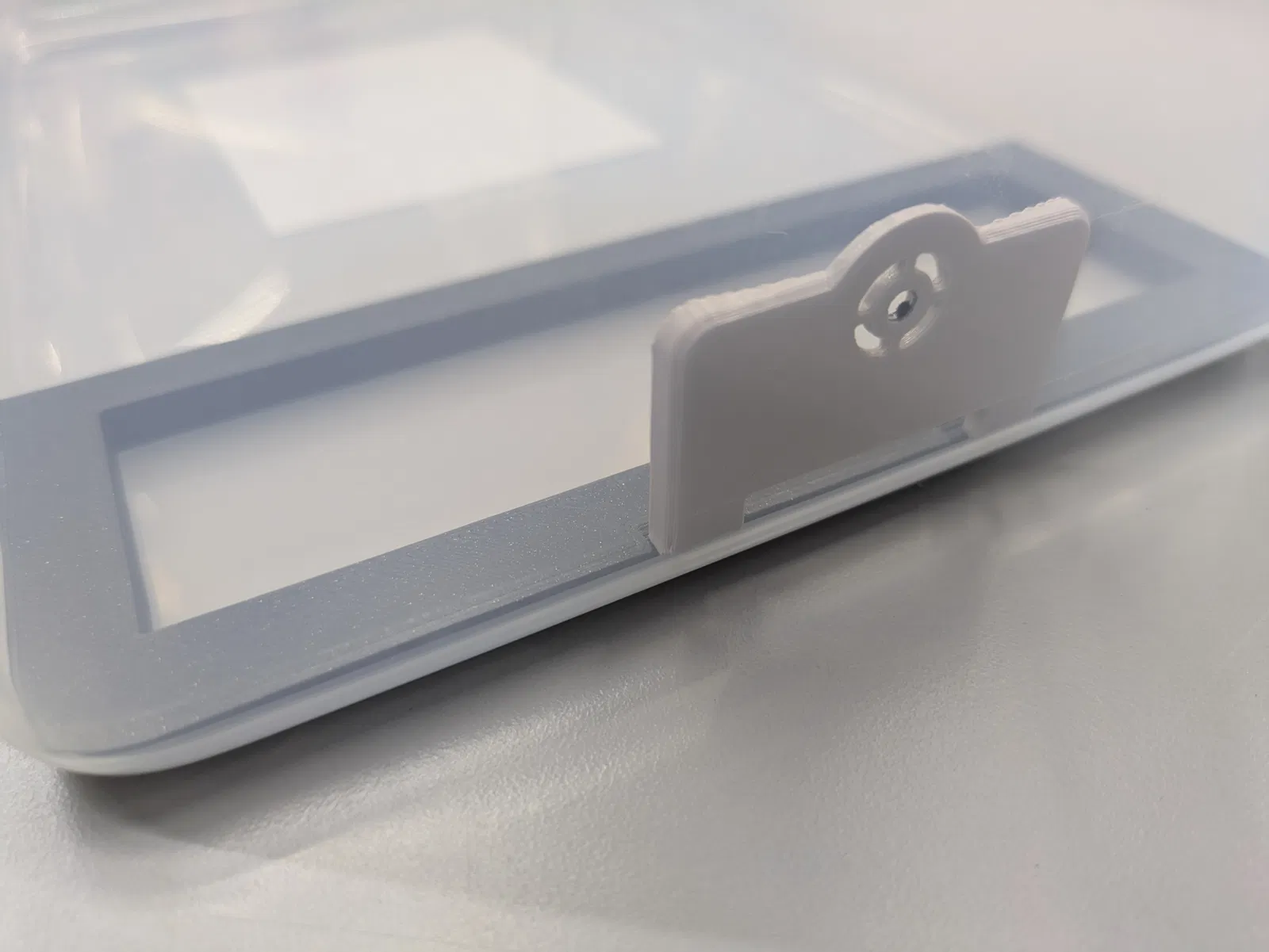 Một miếng đệm (spacer) đơn giản được đặt xung quanh giá đỡ cuộn nhựa để giữ cố định. Mình dùng thêm hộp chứa hạt hút ẩm và ẩm kế gắn bên trong cuộn nhựa,, nhưng bạn có thể dùng loại nào tùy thích - hình ảnh minh họa cho thấy mẫu này ở phía sau. Trên miếng đệm có hai vạch đánh dấu để căn chỉnh mũi khoan theo hệ thống V3 cereal box. Mình dùng đai ốc hình nón của hệ thống đó để gắn khớp nối Bowden. Hãy đảm bảo ống PTFE được cắm sâu vào (và xuyên qua) đai ốc vì nếu không, ma sát sẽ rất lớn.