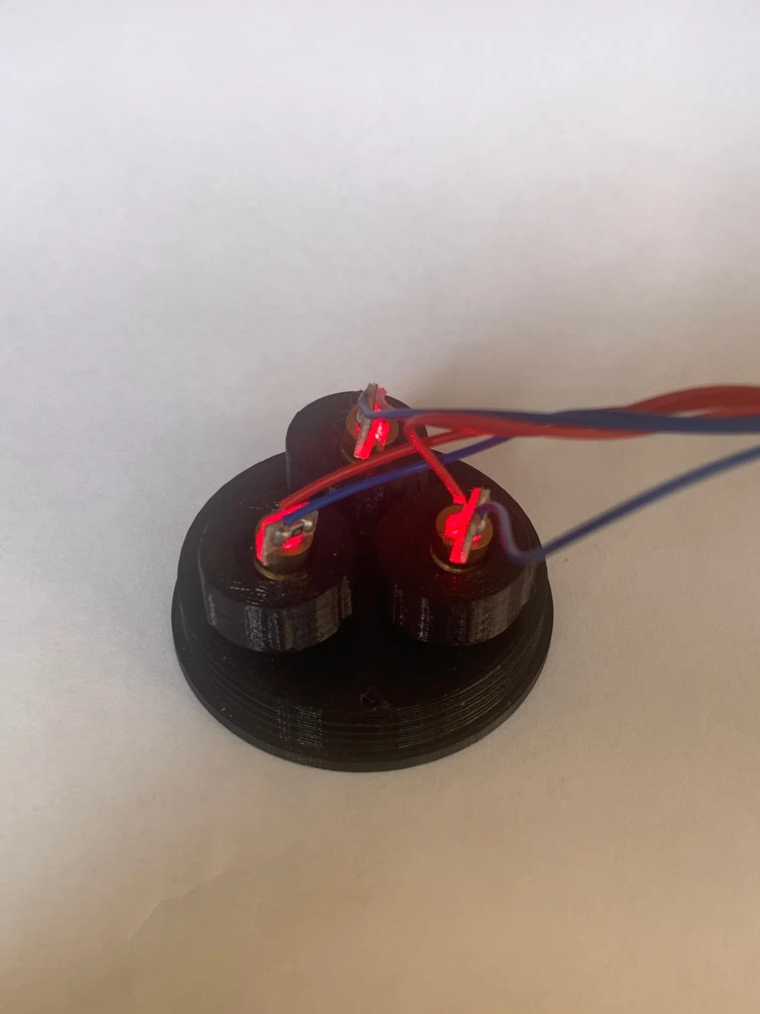Sau khi làm xong phần giữ module laser, mình hoàn thiện dự án khá nhanh bằng cách đặt ba giá đỡ theo hình tam giác, rồi thêm phần thân bên ngoài để che chắn và chống thấm nước nhẹ. Thiết kế còn có thêm lỗ thoát nước, nhớ để lỗ đó ở vị trí thấp nhất nếu bạn định lắp đặt ngoài trời trong thời gian dài.