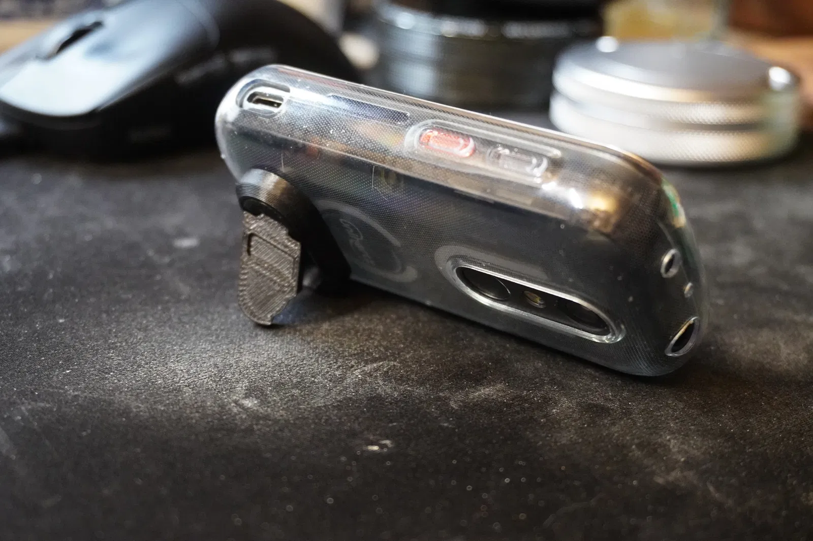 Đây là chiếc chân chống (kickstand) được thiết kế vừa vặn cho điện thoại Jelly Star. Sản phẩm sử dụng một đoạn dây nhựa filament làm trục bản lề, tương tự như thiết kế gốc.