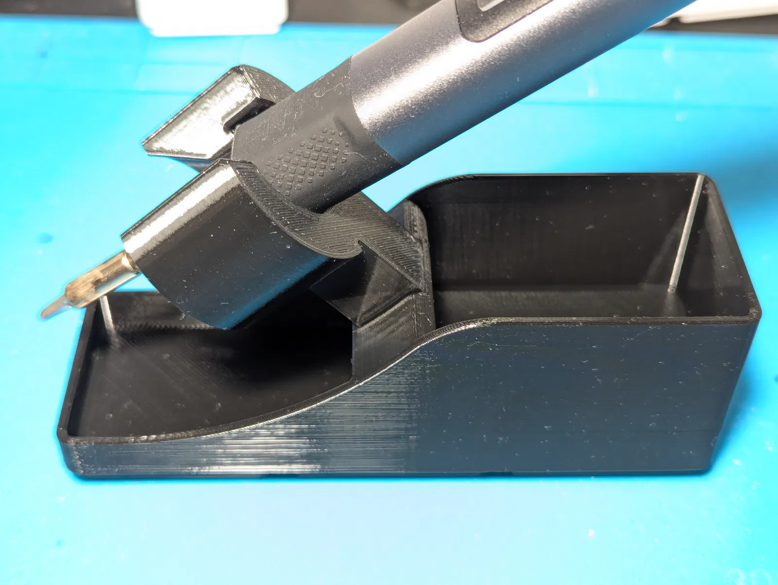 Đây là đế cắm Gridfinity kích thước 1x3x6 dành cho mỏ hàn Fnirsi HS-02A. Nếu tháo phần giá đỡ ra, bạn có thể xếp chồng nó như các khay đựng thông thường.