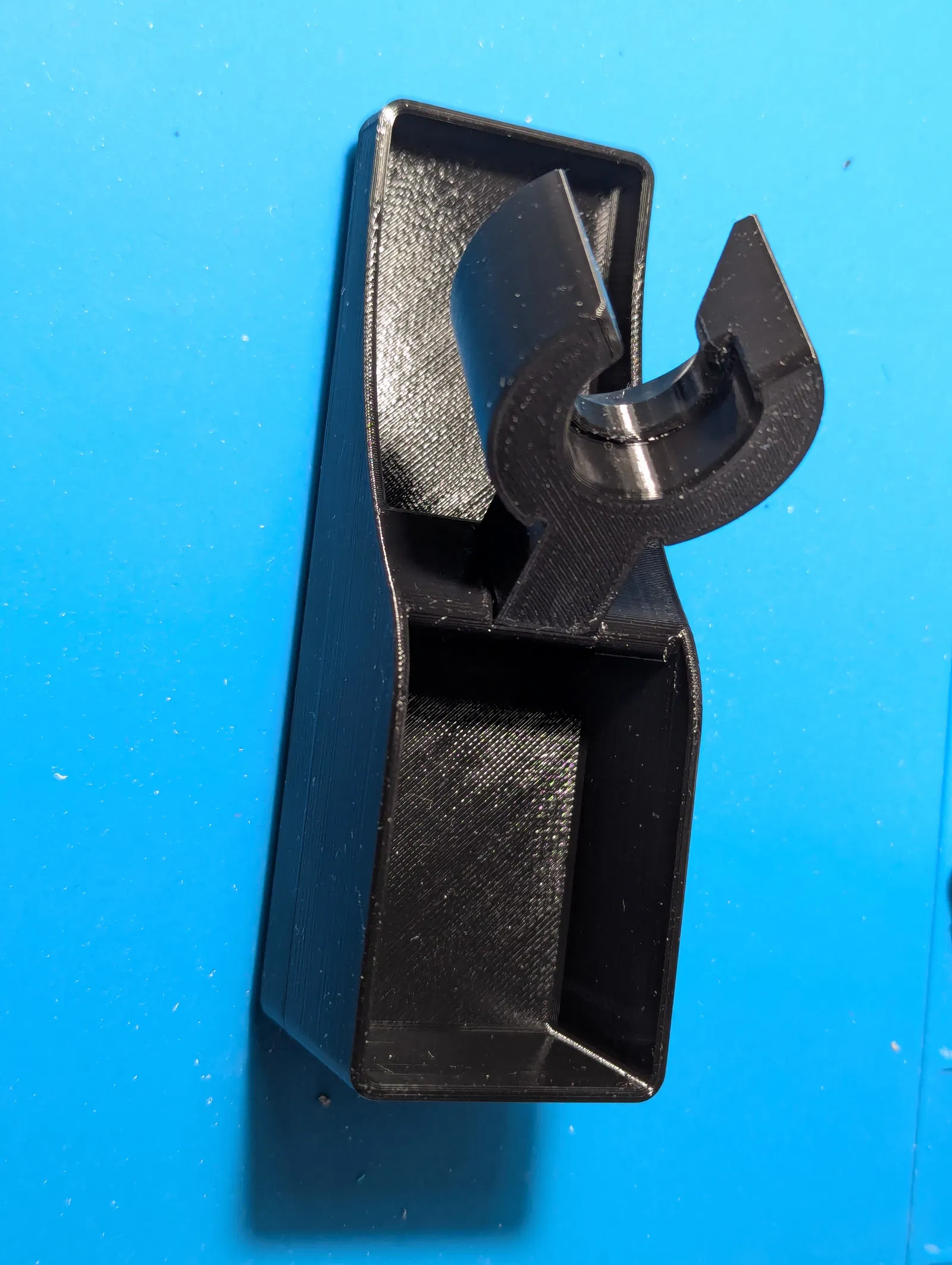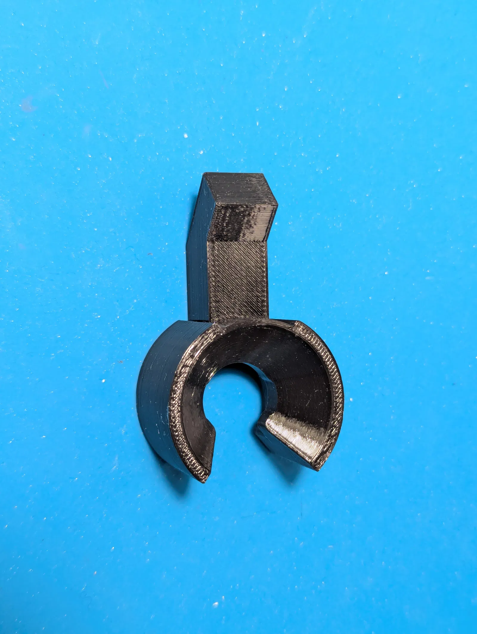 Mình khuyên các bạn nên in phần giá đỡ bằng nhựa PETG hoặc loại vật liệu nào có khả năng chịu nhiệt tốt hơn. Dù nó không tiếp xúc trực tiếp với mũi hàn, nhưng vị trí đặt rất gần nên sẽ khá nóng. Bạn cũng nên thêm một chút support ở phần giữa giá đỡ (tùy thuộc vào khả năng in cầu - bridging của vật liệu bạn dùng, vì PETG thường không tốt lắm ở khoản này).