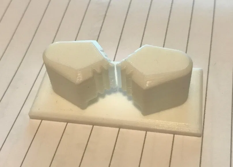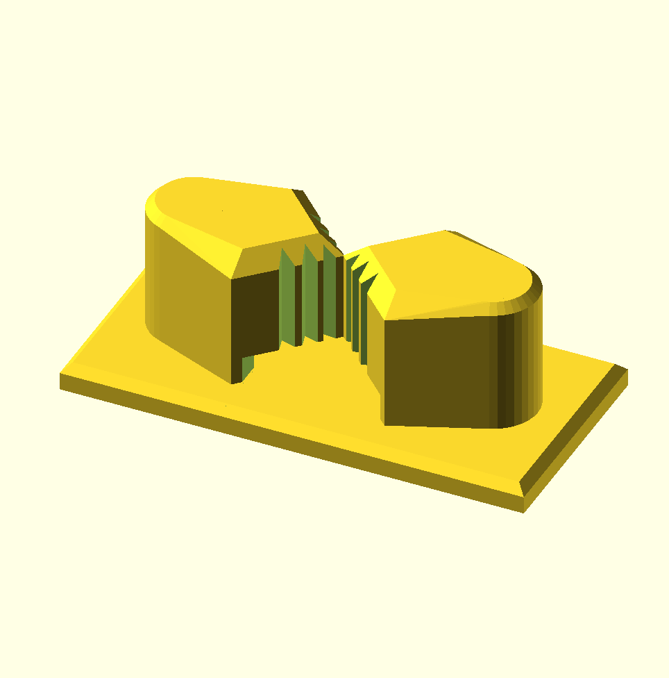 Đoạn mã OpenSCAD dưới đây giúp tạo ra một mẫu khá giống với bản gốc. Bạn có thể in bằng nhựa PLA mà không cần dùng support hay raft.