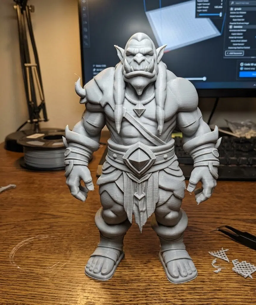 Việc sở hữu một mô hình do chính tay mình in ra mang lại cảm giác rất tự hào. Orc Warrior này có tỉ lệ cân đối, các đường nét cơ bắp rõ ràng và các chi tiết như răng nanh, giáp vai, cùng dây đeo được thể hiện vô cùng sắc sảo. Dù bạn muốn trưng bày trên bàn làm việc, kệ sách hay sử dụng làm nhân vật trong các trò chơi tabletop, mô hình này chắc chắn sẽ gây ấn tượng mạnh với bất kỳ ai nhìn thấy.