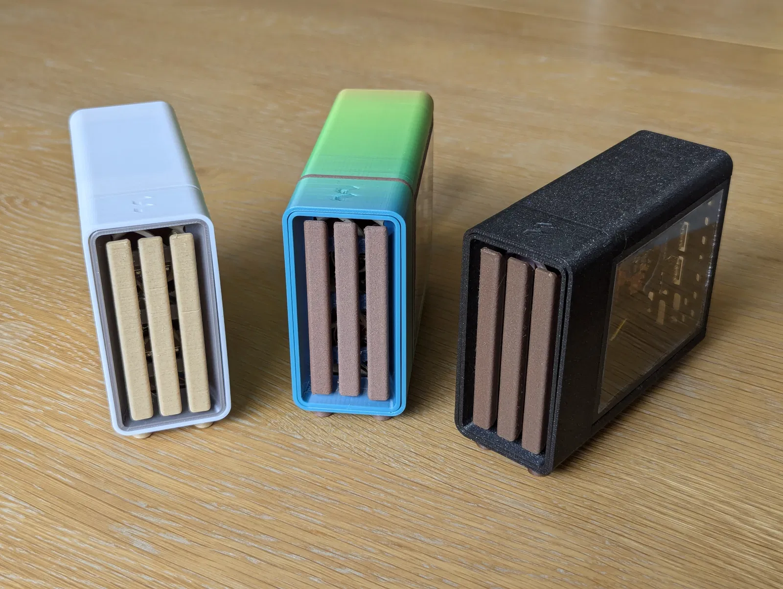 Để in bản màu cầu vồng, bạn cần in phần thân chính theo hướng ngược lại với những gì hiển thị trong file 3MF (với tấm ốp lưng và IO-shield được đặt đúng chiều trên cùng một bàn in). Sau đó, mình in các phần phía trước sao cho hiệu ứng gradient nối tiếp được vào bên trong mặt trước (tức là in các phần ngoài trước, rồi in phần bên trong theo hướng lộn ngược).