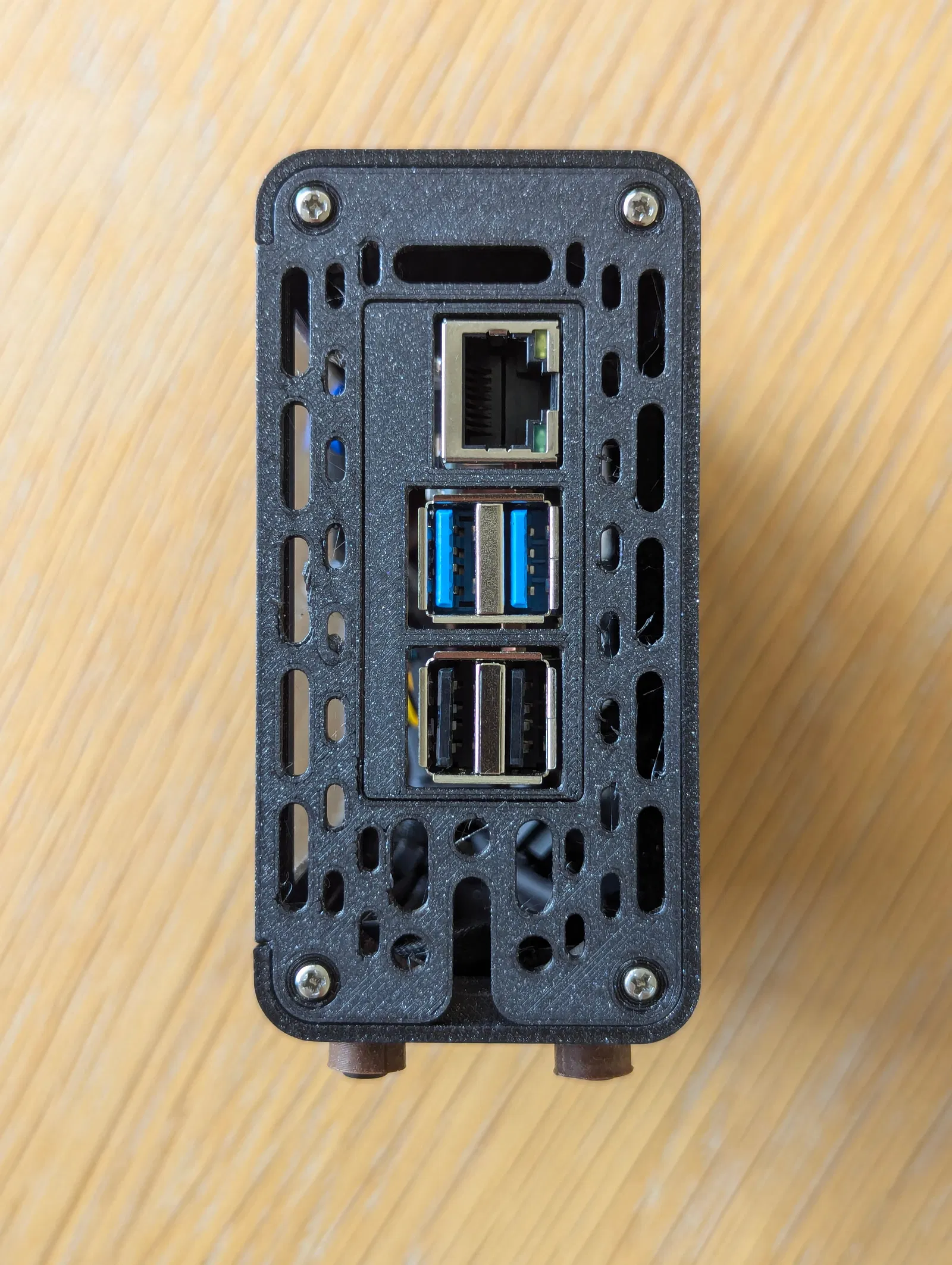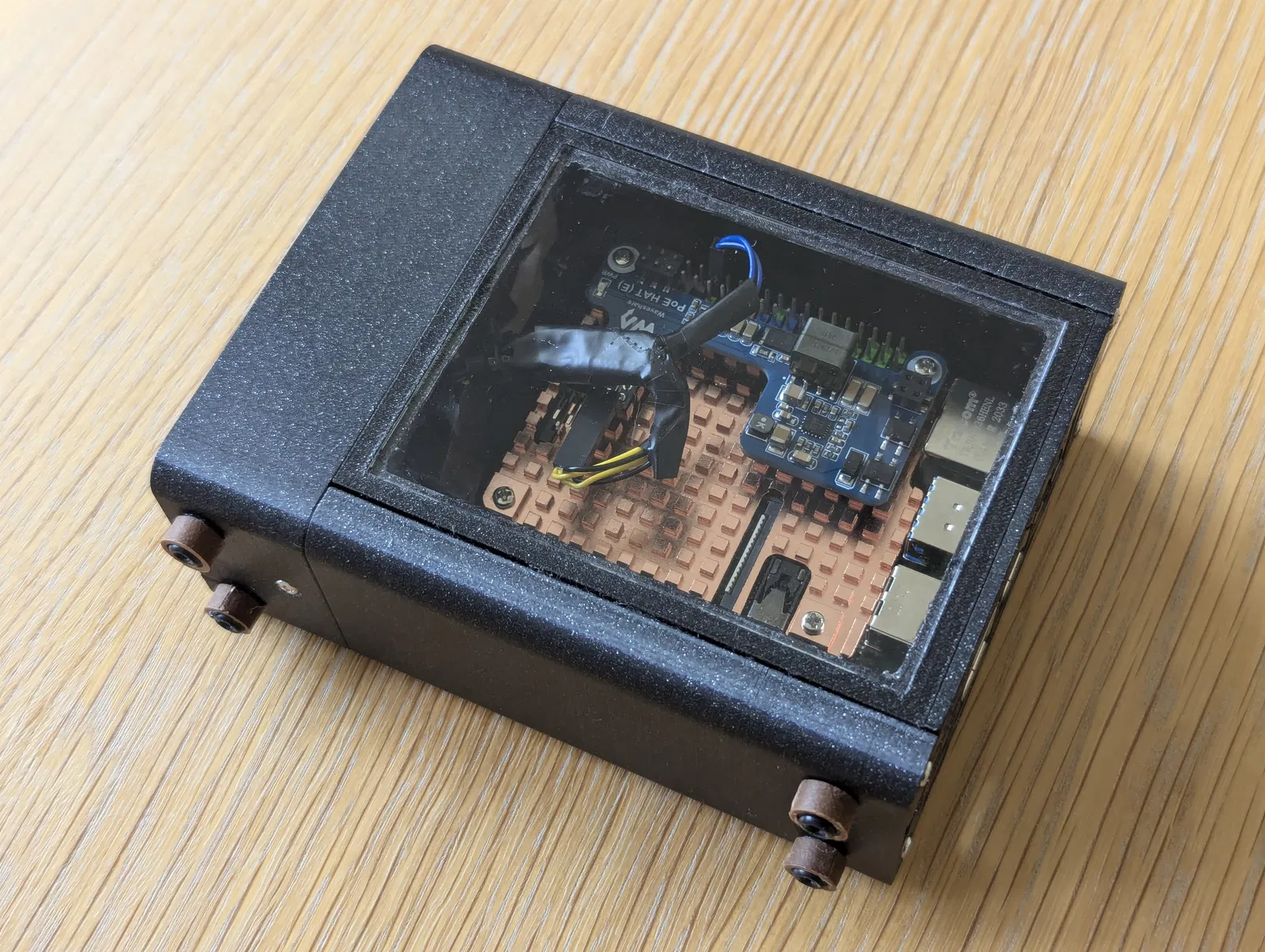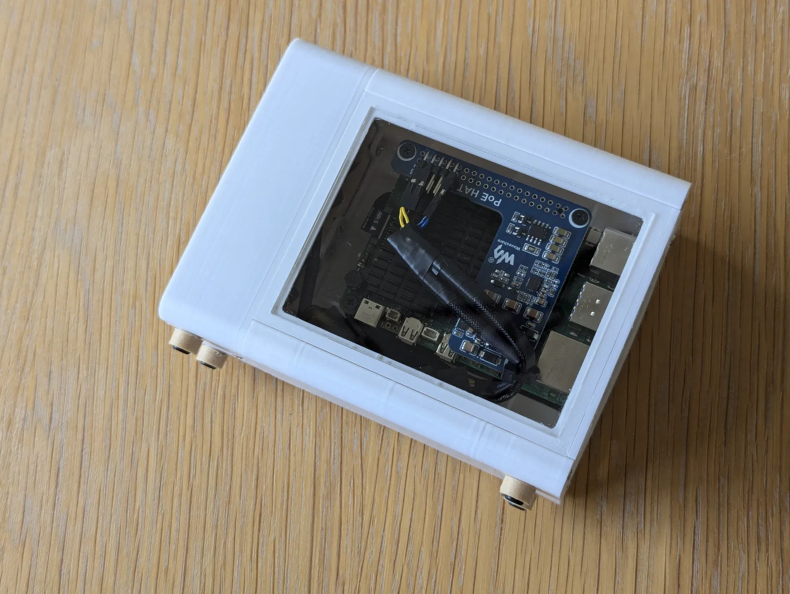 Vì đa số Raspberry Pi của mình đều chạy không màn hình (headless) và kết nối qua mạng dây (dùng PoE), thiết kế gốc (với các cổng phía sau hướng lên trên) làm dây Ethernet chĩa ra khỏi đỉnh case nhìn rất vướng víu.