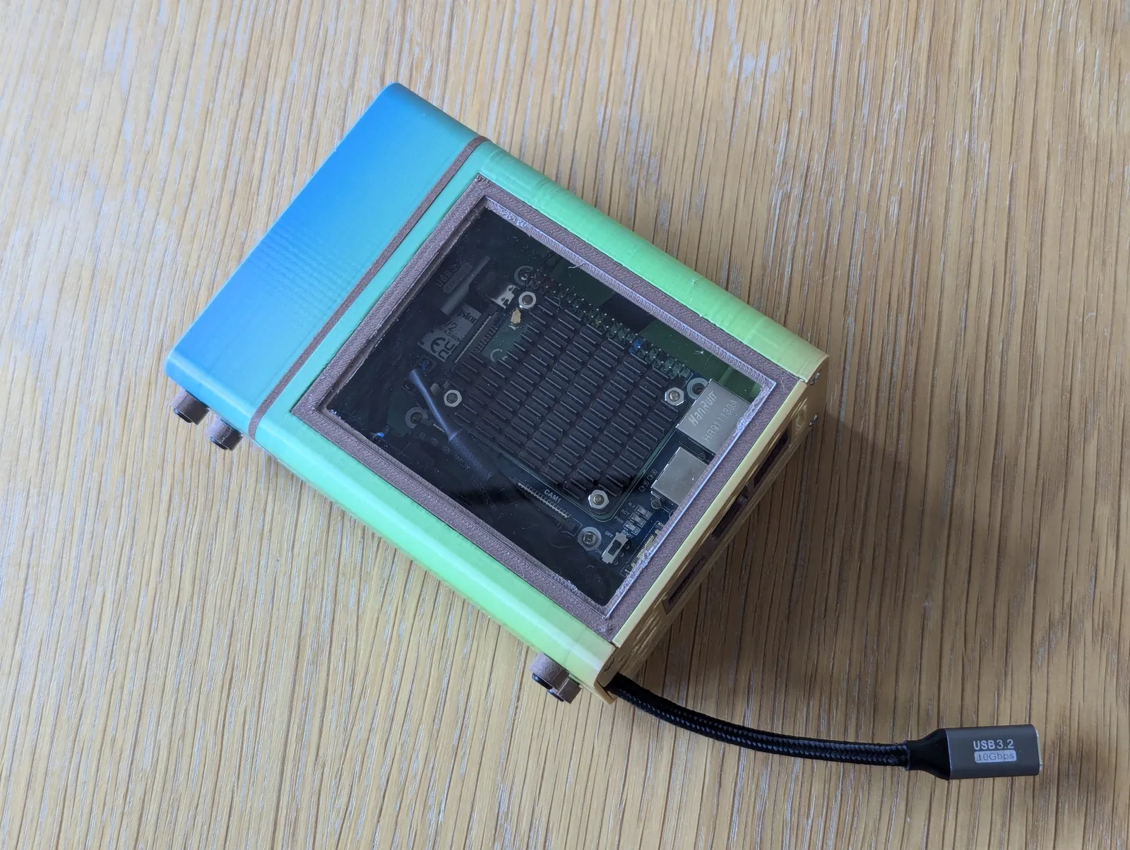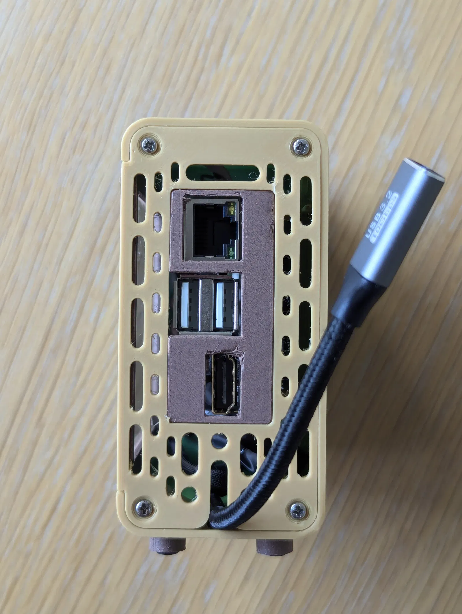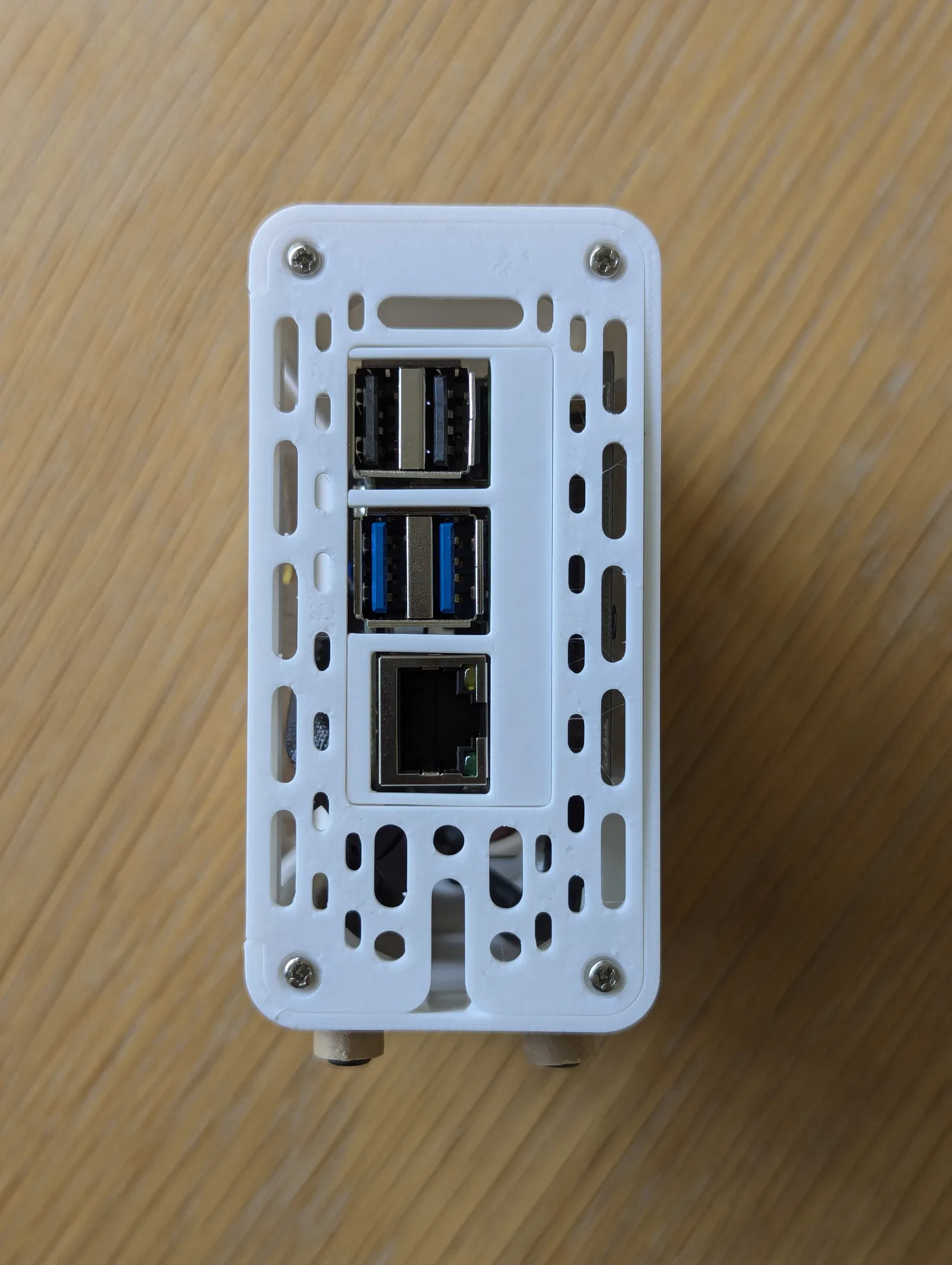Vì đa số Raspberry Pi của mình đều chạy không màn hình (headless) và kết nối qua mạng dây (dùng PoE), thiết kế gốc (với các cổng phía sau hướng lên trên) làm dây Ethernet chĩa ra khỏi đỉnh case nhìn rất vướng víu.