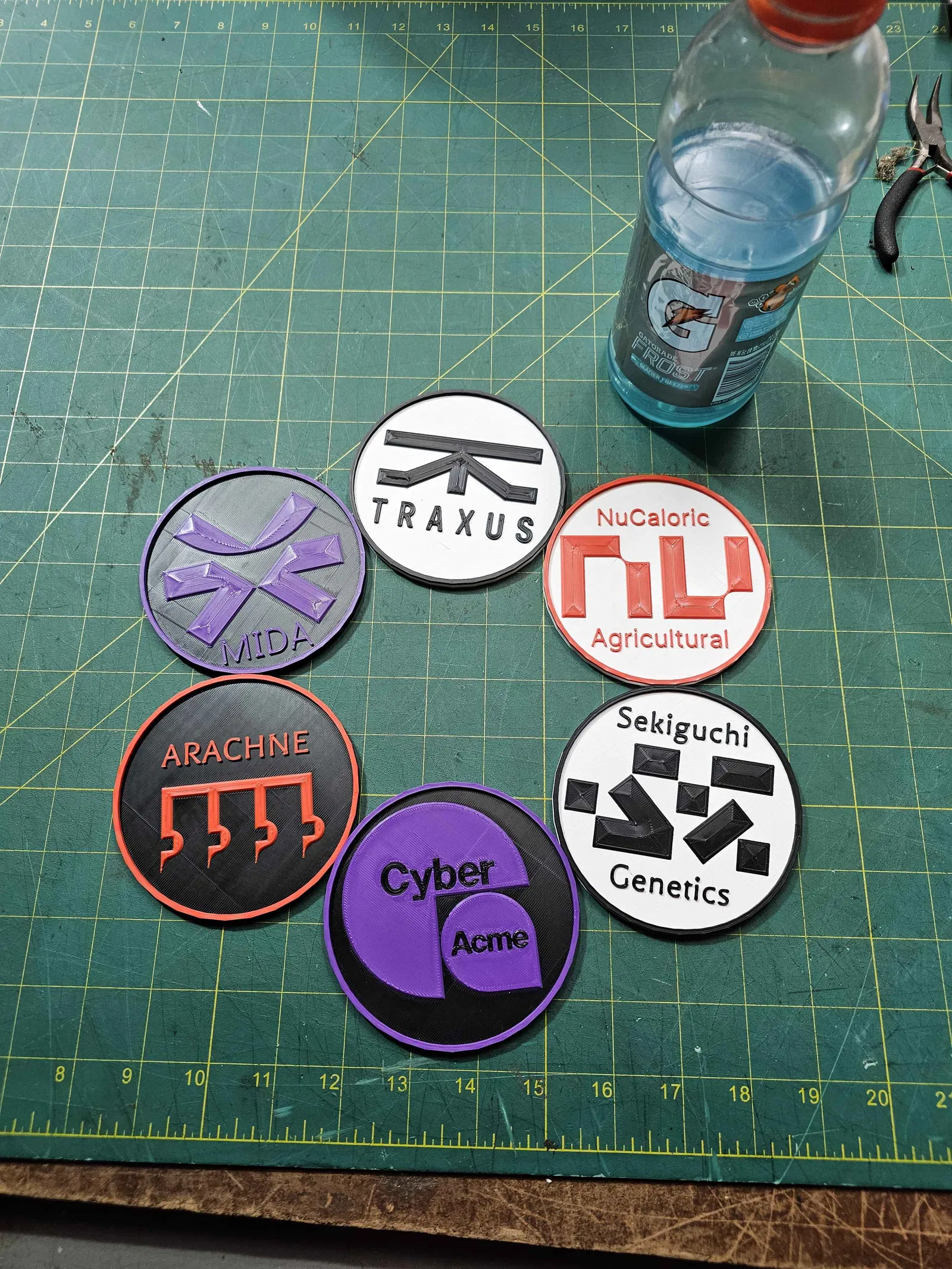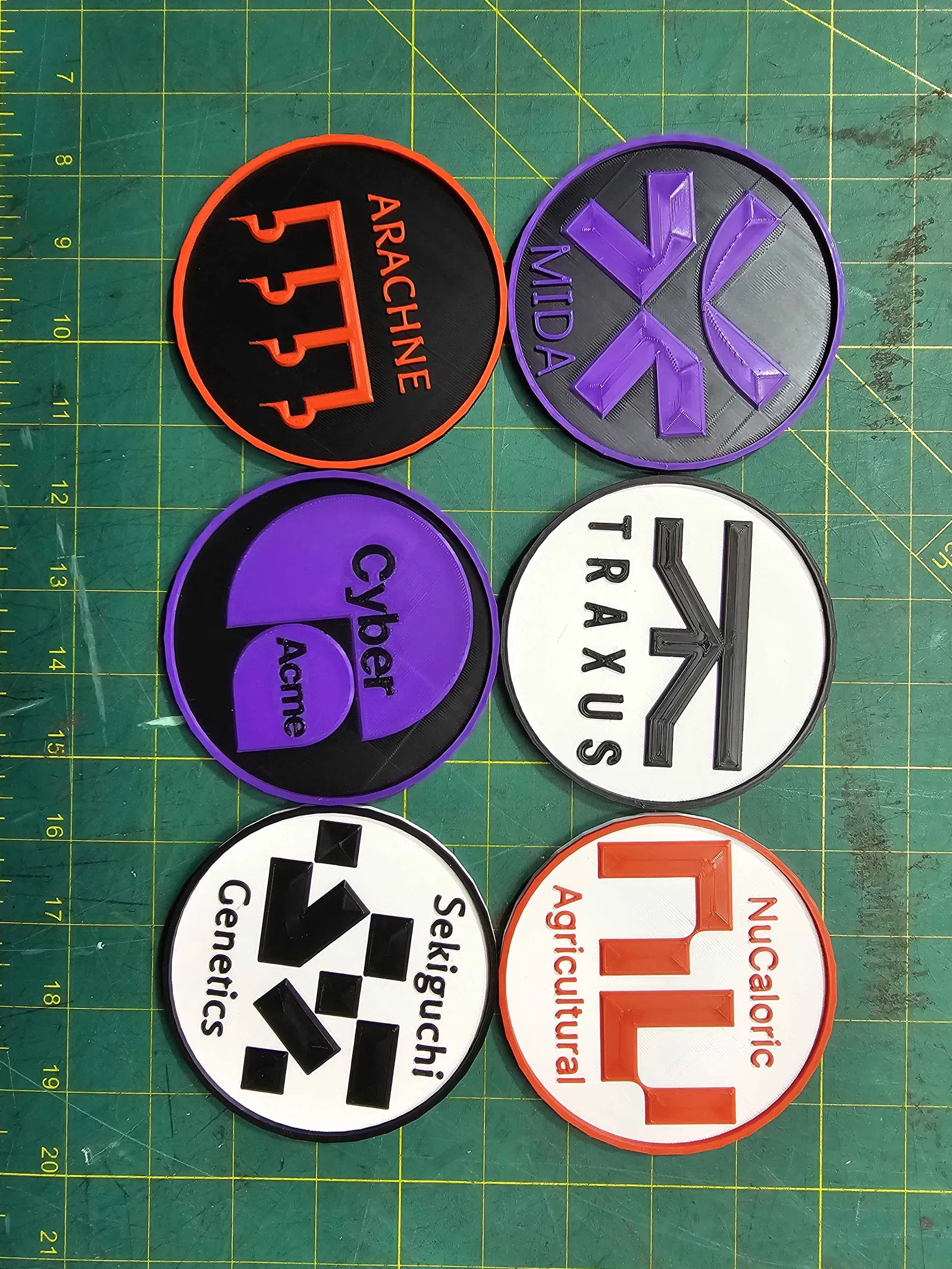 Đây là một bộ đế lót ly đơn giản được lấy cảm hứng từ tựa game Marathon! Mỗi chiếc đế đại diện cho một trong các tập đoàn lớn mà người chơi nhận hợp đồng trong game. Hãy thể hiện sự ủng hộ cho tập đoàn yêu thích của bạn từ Sekiguchi Genetics, MIDA, Arachne, CyberAcme, Traxus cho đến NuCaloric Agricultural. Các đế lót ly có đường kính 100mm với phần viền dày 5mm.