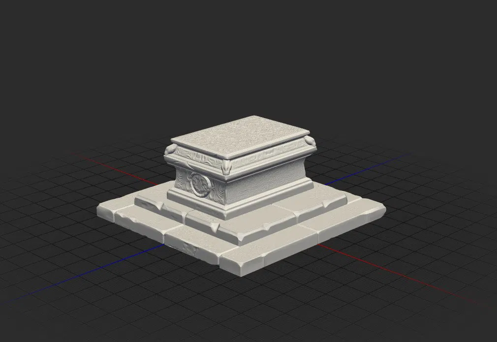 Mô hình này là một sản phẩm 3D được thiết kế tỉ mỉ dưới dạng một bệ đỡ bằng đá, mang hơi hướng cổ điển và quyền quý. Với các đường nét chạm trổ tinh xảo trên bề mặt cùng cấu trúc bậc thang vững chãi, nó được sinh ra để trở thành bệ phóng hoàn hảo cho các nhân vật hoặc công trình kiến trúc mini trong thế giới game bàn cờ hoặc sa bàn thu nhỏ. Thiết kế của nó không chỉ đơn thuần là một khối vật thể mà còn tạo ra điểm nhấn thị giác cực kỳ bắt mắt, giúp làm nổi bật chủ thể chính mà bạn đặt lên trên.