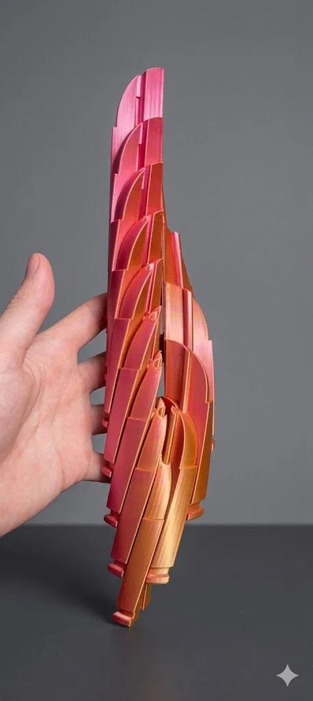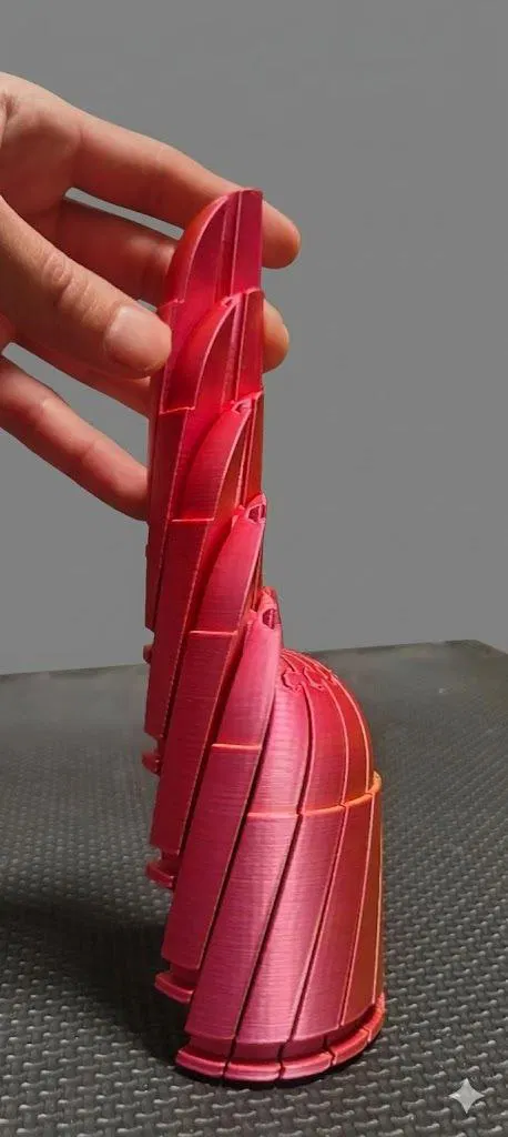 Thiết kế tập trung vào hình học và chuyển động thay vì mô phỏng thực tế, tạo nên một món đồ chơi cách điệu và an toàn. Mô hình này in hoàn thiện nguyên khối, không cần dùng support và có thể sử dụng ngay khi vừa lấy ra khỏi bàn in.