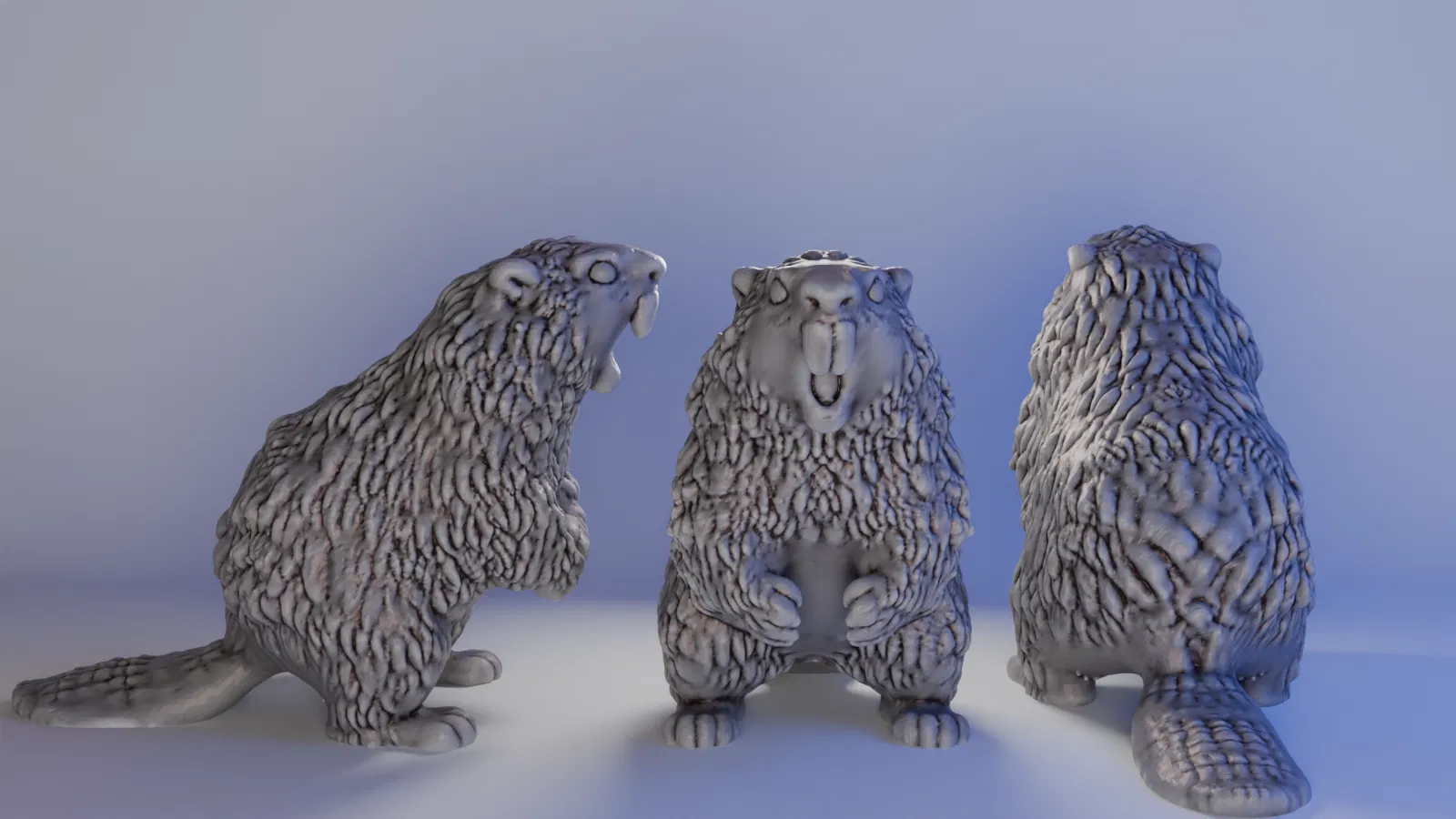 Trải nghiệm thú vị với cọ tạo kết cấu. Tôi đã thêm bộ lông dày, vảy cho đuôi và răng, đồng thời tinh chỉnh lại mô hình hải ly để trông chân thực hơn. Sản phẩm gồm hai kích thước 17mm và 25mm, rất phù hợp cho các buổi chơi DND hay TTRPG của bạn.