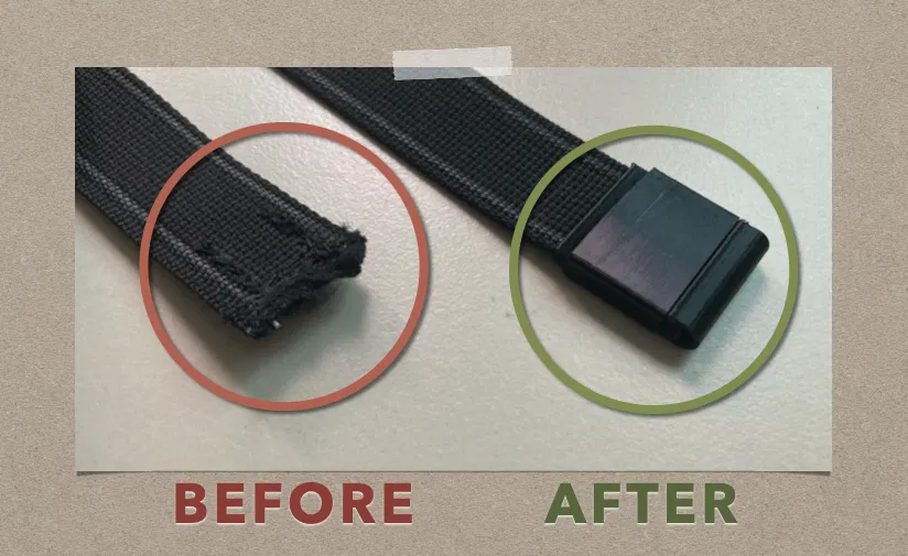 - Giúp ngăn ngừa tình trạng sờn, tưa sợi ở đầu dây đeo (có thể dùng kèm sau khi hơ lửa các loại dây Nylon hoặc dùng thêm với đường may).