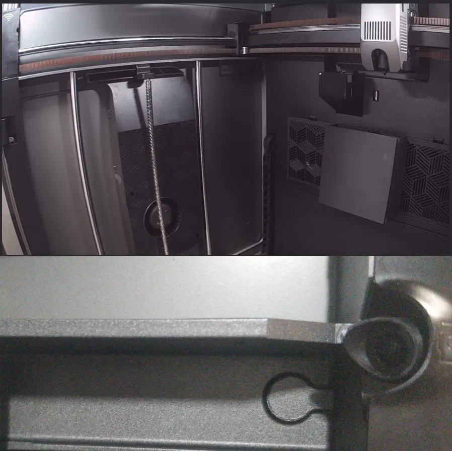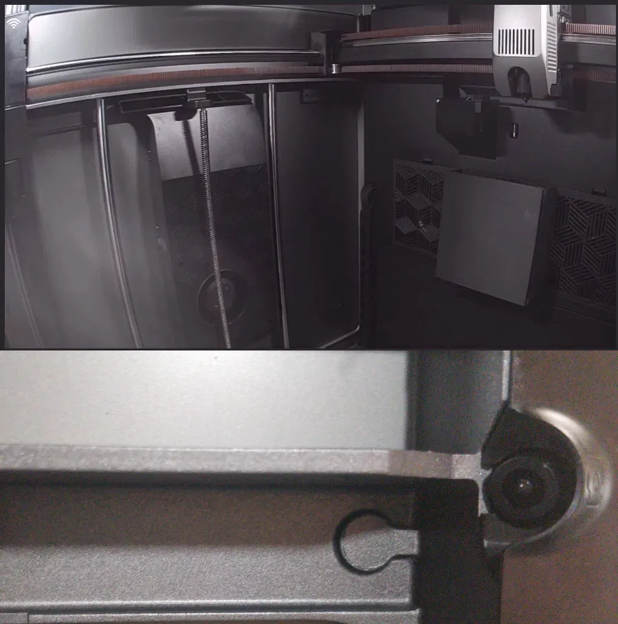 Camera tích hợp trên máy K2 Plus khá là xịn, nhưng ánh sáng từ đèn nội thất phía sau bên phải máy in lại gây ra hiện tượng khúc xạ vào ống kính, làm cho hình ảnh bị mờ đục khó chịu. Mọi người xem hình trước và sau khi gắn là thấy rõ liền.