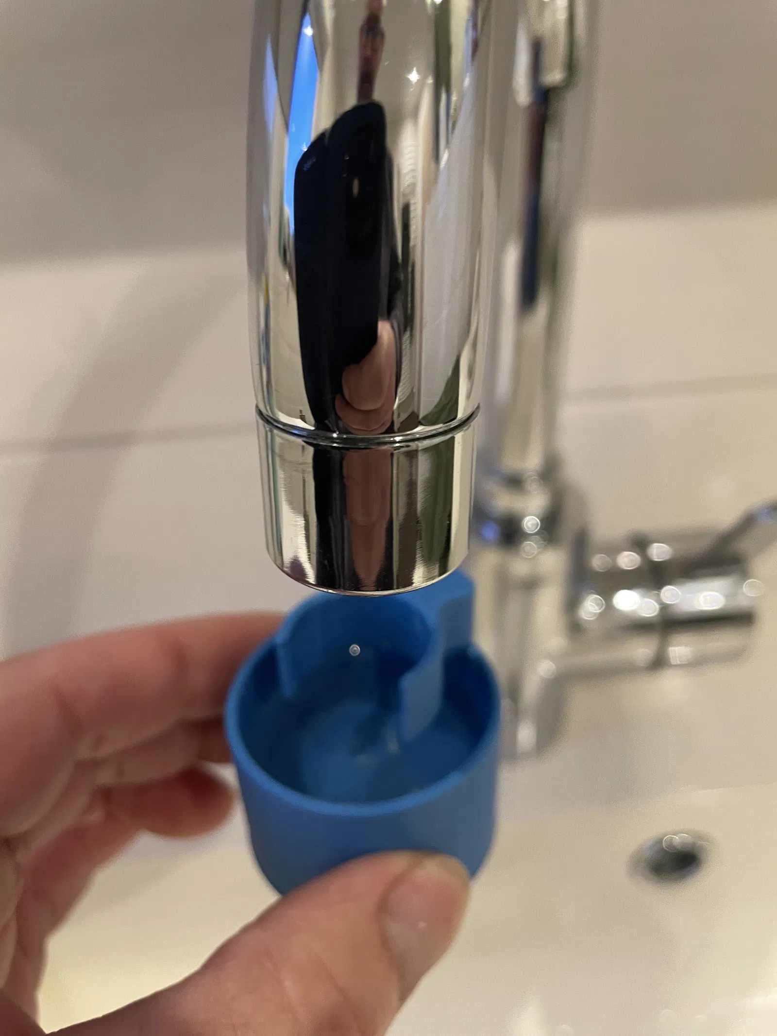 Cái dụng cụ tẩy cặn này chỉ cần gắn trực tiếp vào vòi nước, sau đó đổ dung dịch axit citric (chanh) vào. Anh chị để cho nó ngấm khoảng vài tiếng rồi tháo ra, nếu ngâm đủ lâu thì vòi nước nhà mình sẽ sạch bong sáng bóng như mới luôn nha!