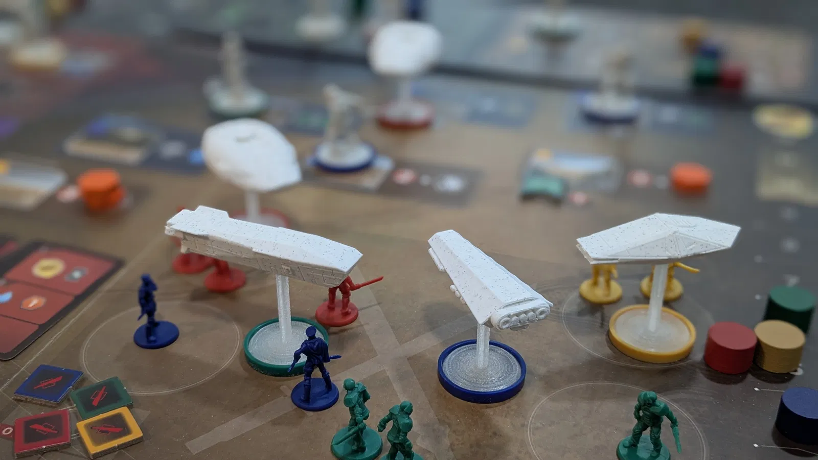 Về phần thiết kế và màu sắc, bạn có thể in tàu bằng nhựa đúng màu sắc của từng phe, hoặc tận dụng các vòng đế màu để phân biệt các phe với nhau. Bạn cũng có thể in bằng nhựa màu sáng rồi sơn lại giống như cách mình đã làm với nhựa PLA màu trắng marble và màu acrylic cho phần đế.