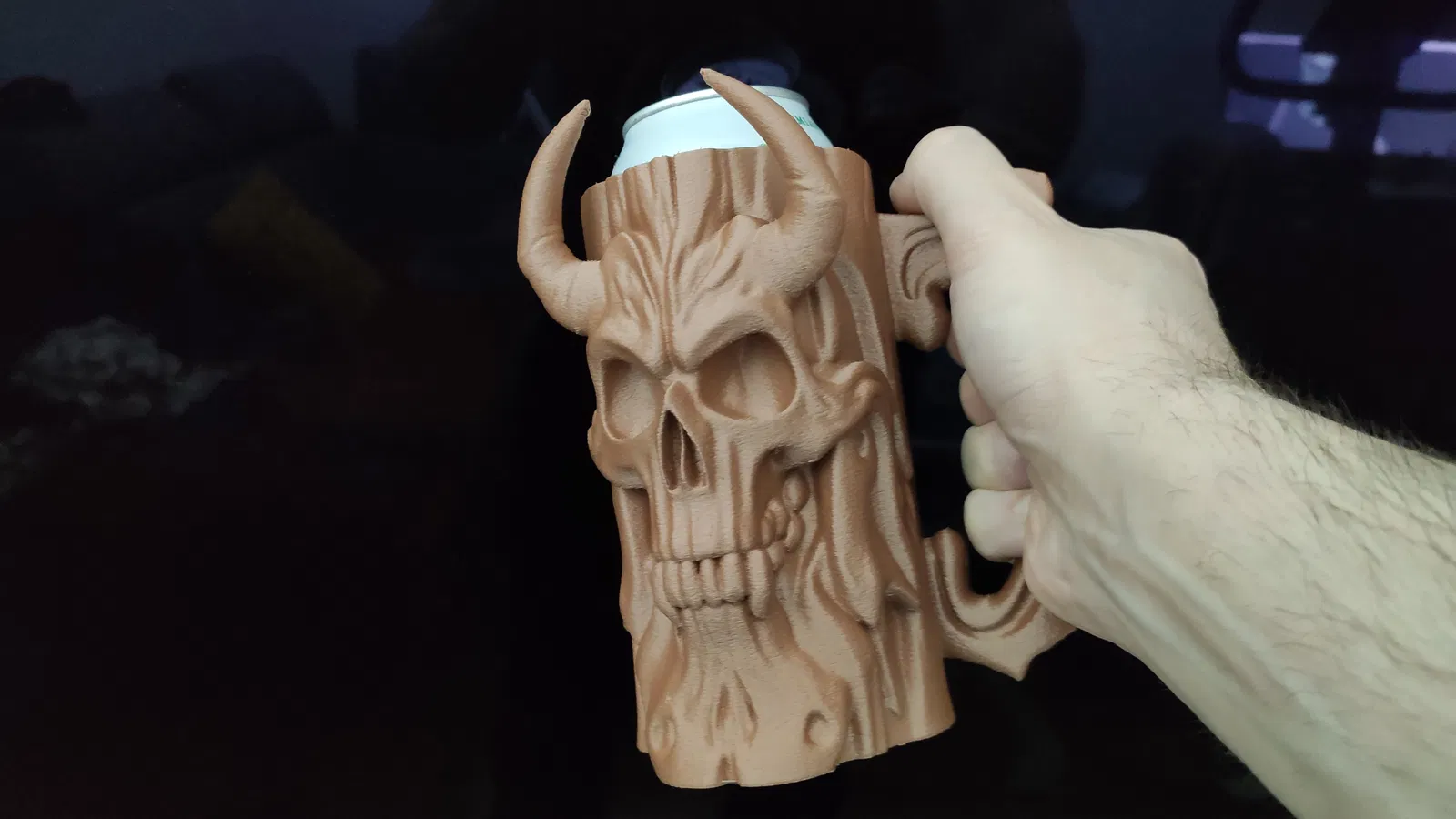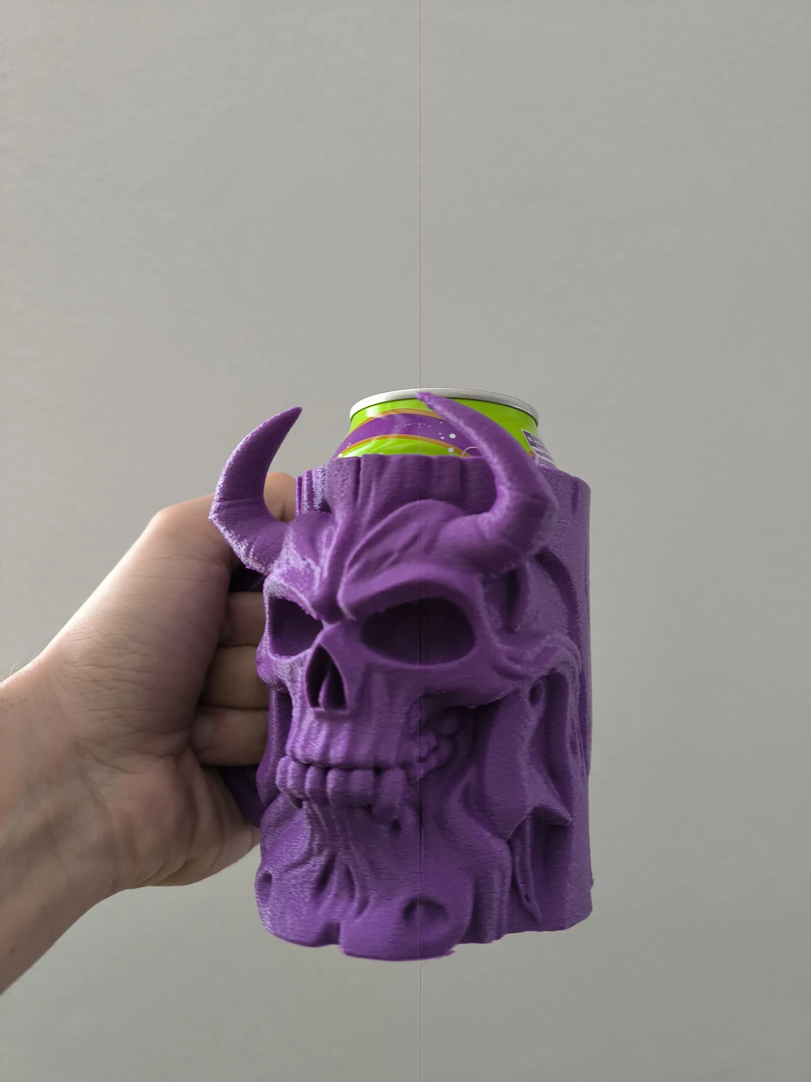 Giá đỡ lon bia hình đầu lâu quỷ cây độc đáo. Phù hợp với lon bia 0.5L chuẩn EU (dáng cao). Cập nhật mới nhất đã bổ sung thêm tệp STL cho lon 12oz. Tác phẩm in ra rất ấn tượng với hiệu ứng Fuzzy skin.