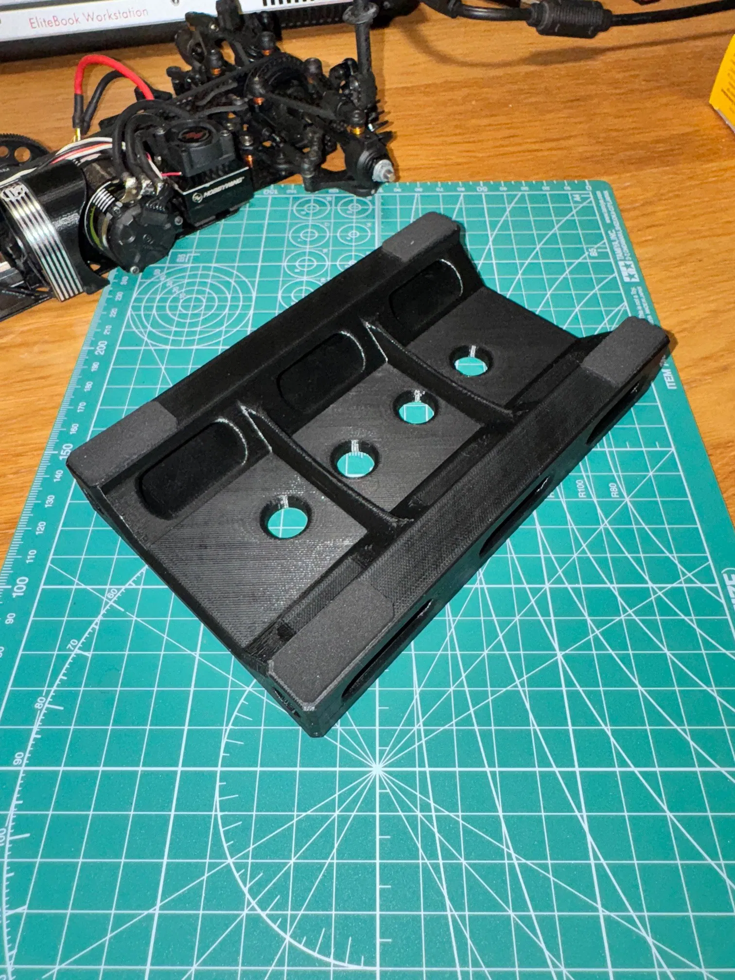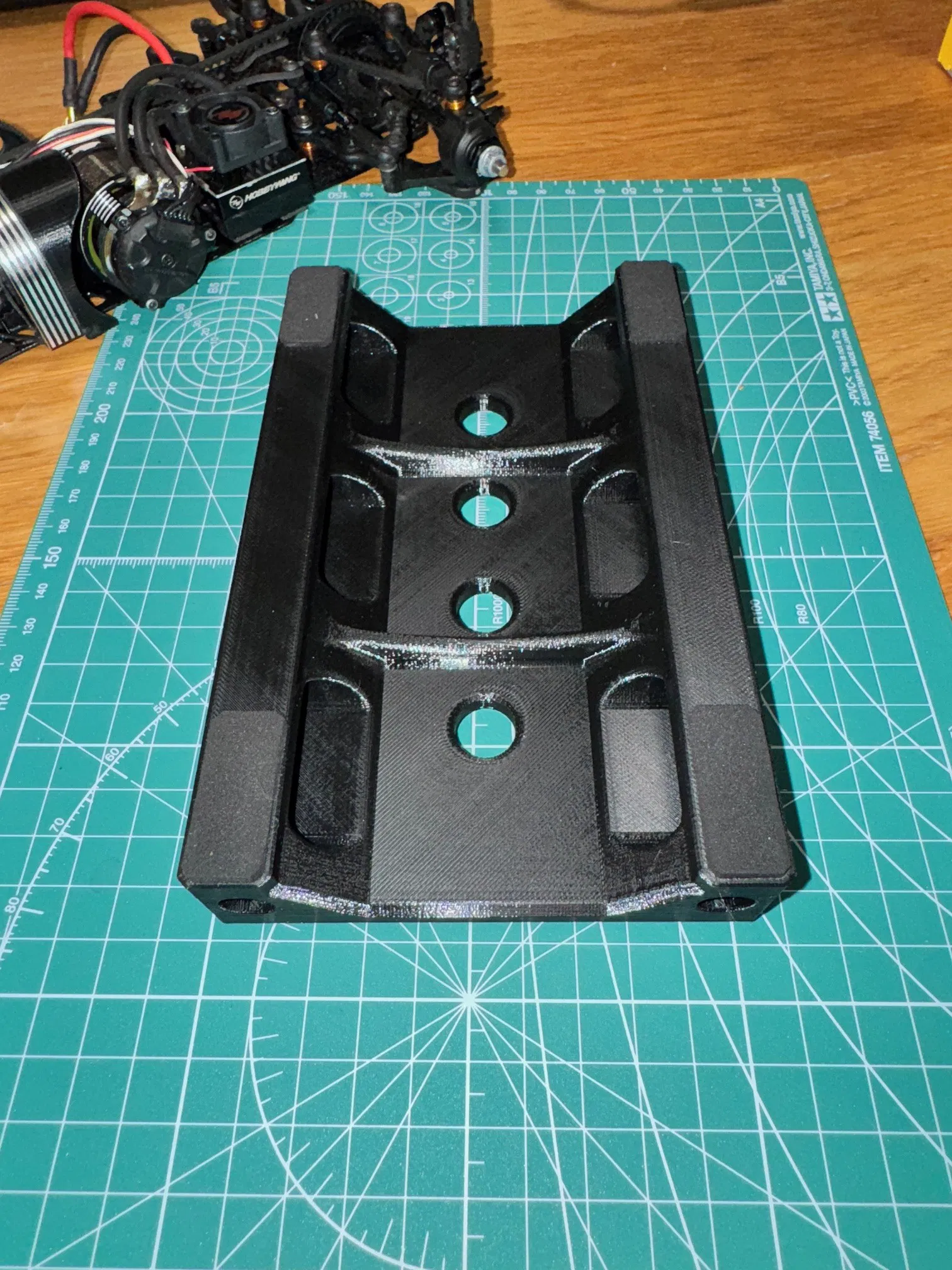 Đây là mẫu giá đỡ cho xe RC 1:10. Giá đỡ này rất chắc chắn và cứng cáp, nên các bạn cứ yên tâm sử dụng nhé :-). Mình khuyến khích mọi người nên dán thêm một lớp xốp neoprene dày tối đa 2mm vào các bề mặt tiếp xúc. Mình thường mua loại xốp neoprene 3M khổ A4 chất lượng tốt để dán.