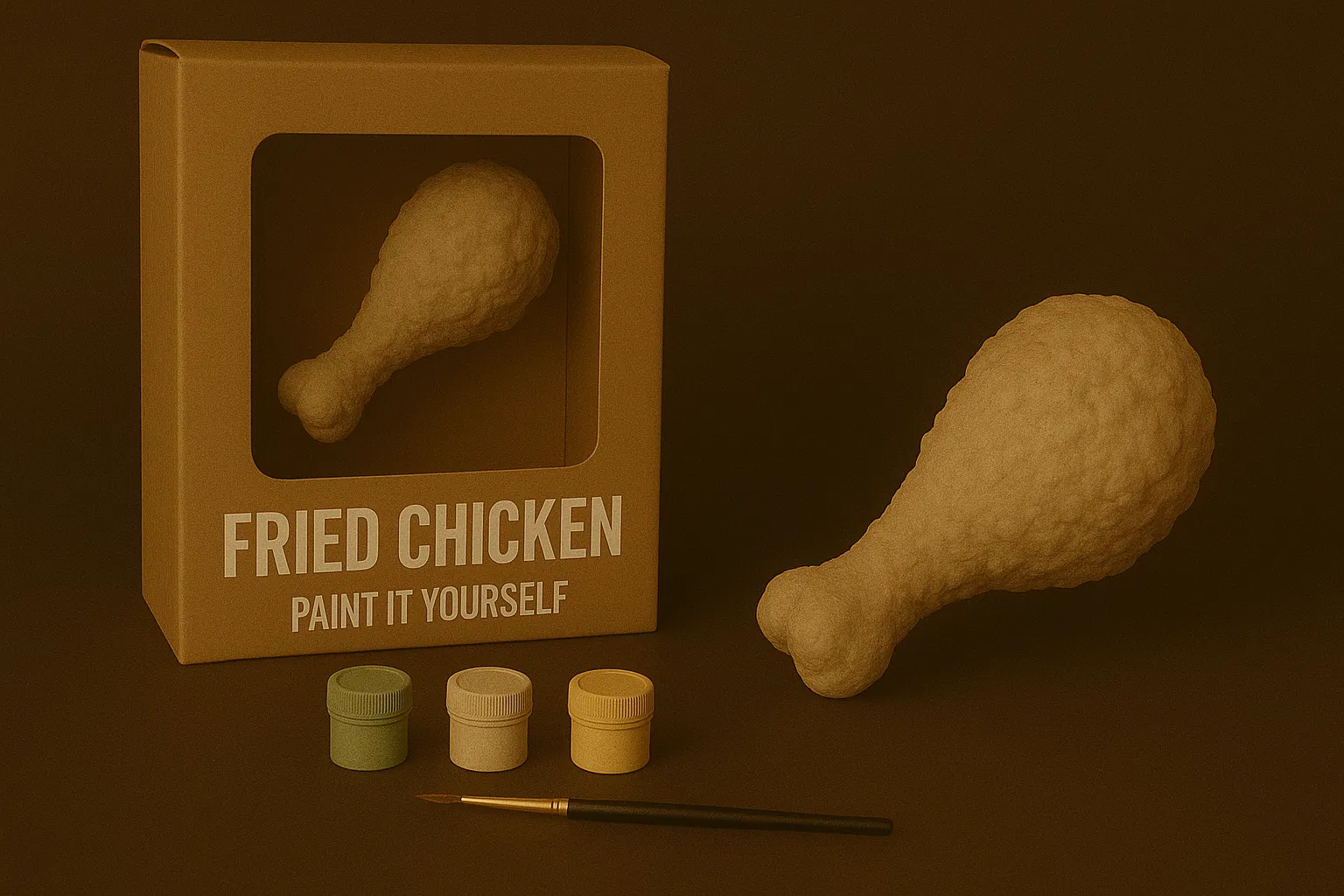 Mô hình gà rán phiên bản tự tô màu độc đáo. Với thiết kế tối giản và bề mặt nhám, đây là lựa chọn tuyệt vời để bạn thỏa sức sáng tạo và trang trí góc làm việc của mình.
