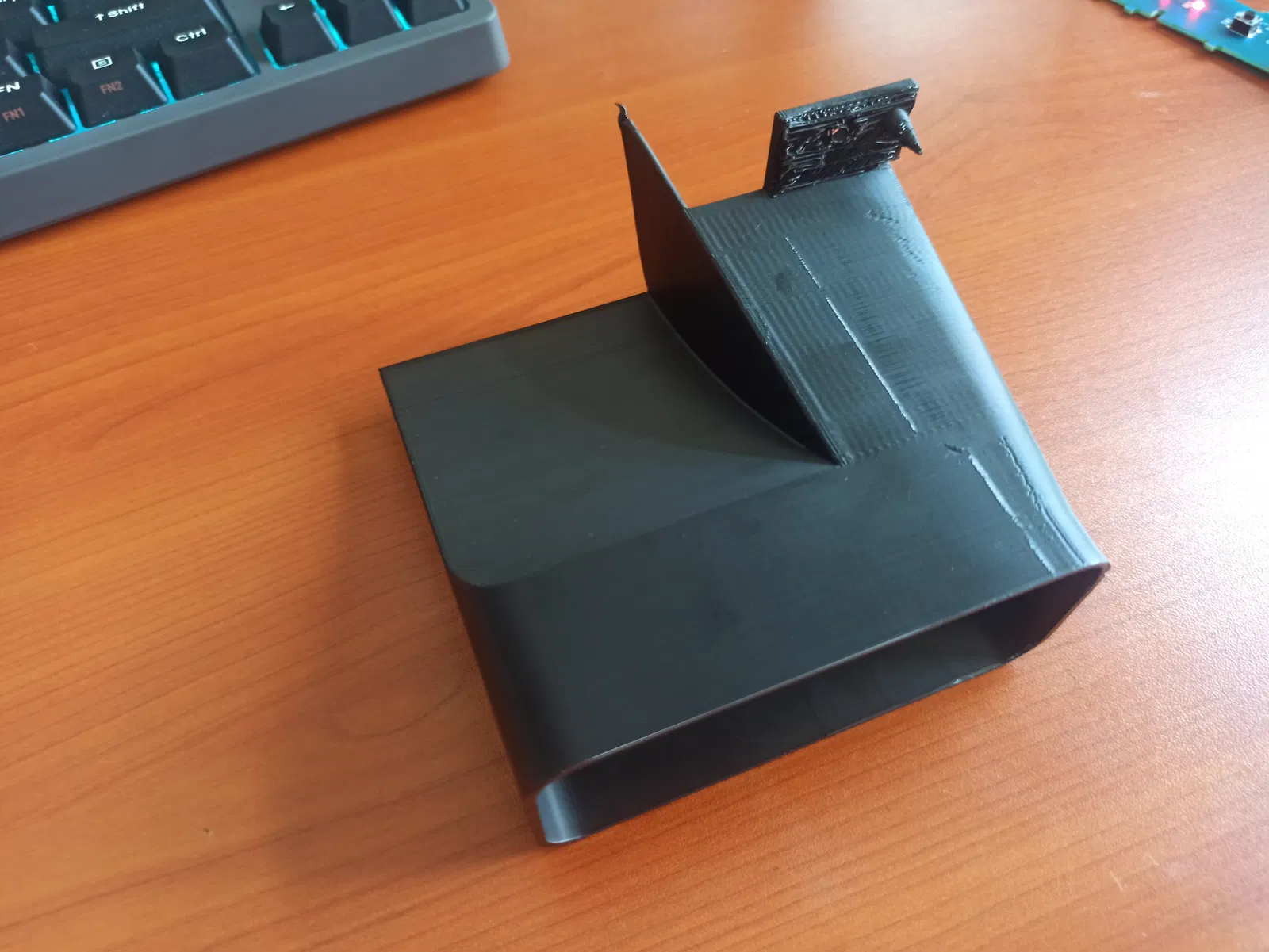 Nên in theo chiều thẳng đứng và dùng support ở phần tấm gắn. Khuyên dùng nhựa ABS hoặc PETG (hoặc bất kỳ loại nhựa nào chịu nhiệt tốt dưới ánh nắng mặt trời). Bạn nhớ lật gương (mirror) mô hình khi cắt lát (slicing) để làm cho họng gió bên phải nhé. Nếu muốn chắc chắn thì bạn có thể bắt vít vào khung gắn màn hình, nhưng thực tế thì nó đã khá khít khi lắp vào rồi.
