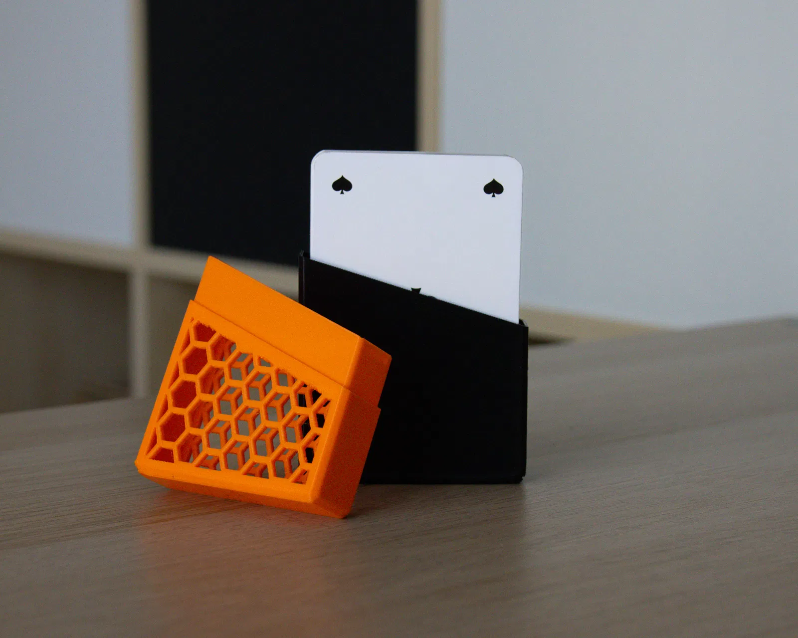Cái hộp này cực kỳ lý tưởng để bạn cất giữ bộ bài khi không sử dụng đến. Hộp giúp bảo vệ bộ bài một cách hoàn hảo khi bạn mang theo trong ba lô, túi quần hoặc bất cứ đâu. Nếu muốn kiểm tra nhanh xem mình đang mang theo bộ bài nào, bạn chỉ cần nhìn qua các lỗ cắt hình lục giác là biết ngay. Vì mỗi bộ bài có kích thước khác nhau, mình đã đính kèm tệp Fusion để bạn có thể tùy chỉnh mẫu thiết kế cho phù hợp với nhu cầu. Bạn chỉ cần thay đổi các thông số về chiều cao, chiều rộng và chiều dài là được. Tệp .stl đi kèm được thiết kế cho 36 lá bài với kích thước 58.5x12.5x90mm.