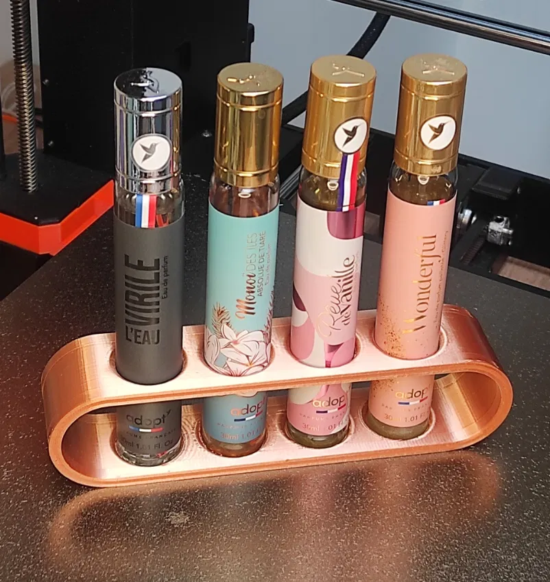 Bạn đang tìm cách sắp xếp lại bàn trang điểm sao cho gọn gàng và bắt mắt hơn? Hãy thử ngay mẫu khay đựng nước hoa 4 ngăn (Presentoir & Range parfum adopt) này. Đây là một thiết kế in 3D tối giản với hình dáng elip hiện đại, được đo đạc chính xác để giữ vững 4 chai nước hoa cỡ 30ml của dòng Adopt. Phụ kiện này không chỉ giúp bạn phân loại nước hoa một cách khoa học, tránh đổ vỡ mà còn là vật phẩm trang trí làm nổi bật góc làm đẹp của bạn. Với cấu trúc vững chắc và dễ dàng in ấn bằng các loại nhựa thông dụng như PLA, bạn có thể tự tay tạo ra một món đồ hữu ích, cá tính chỉ trong vài giờ. Đây là lựa chọn hoàn hảo cho những tín đồ yêu thích sự ngăn nắp và vẻ đẹp tinh tế.