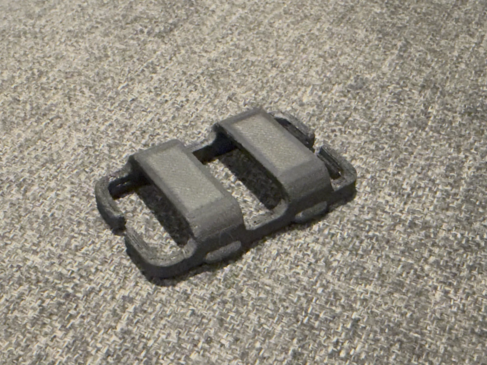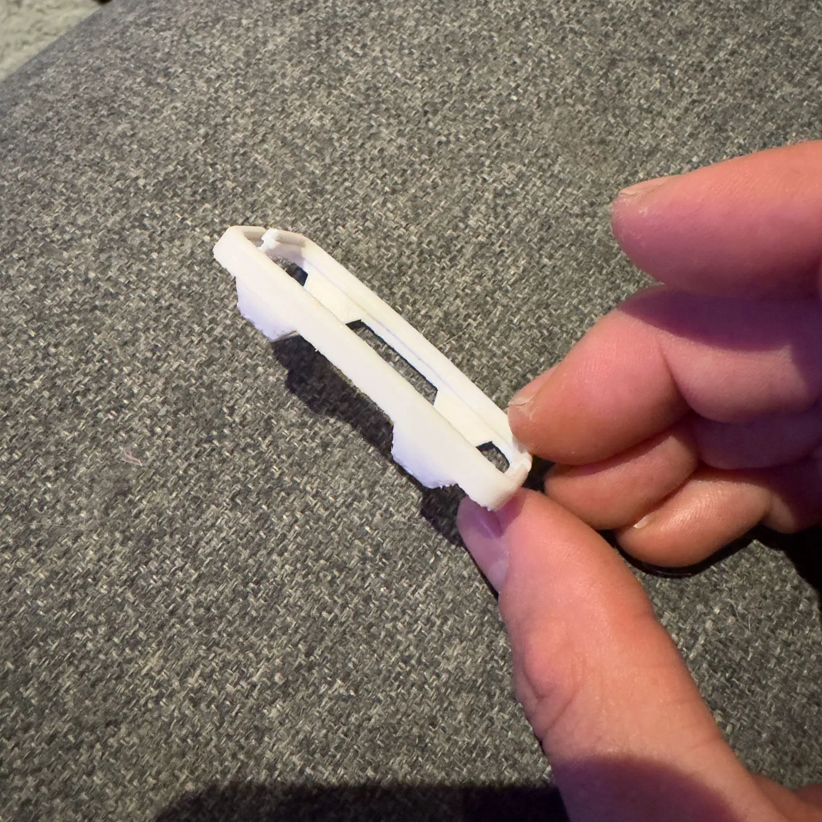 Không nên in bằng PLA — chiếc kẹp này cần độ đàn hồi nhất định khi gắn vào, mà PLA thì lại quá giòn, không chịu nổi. Các loại vật liệu được khuyến nghị: