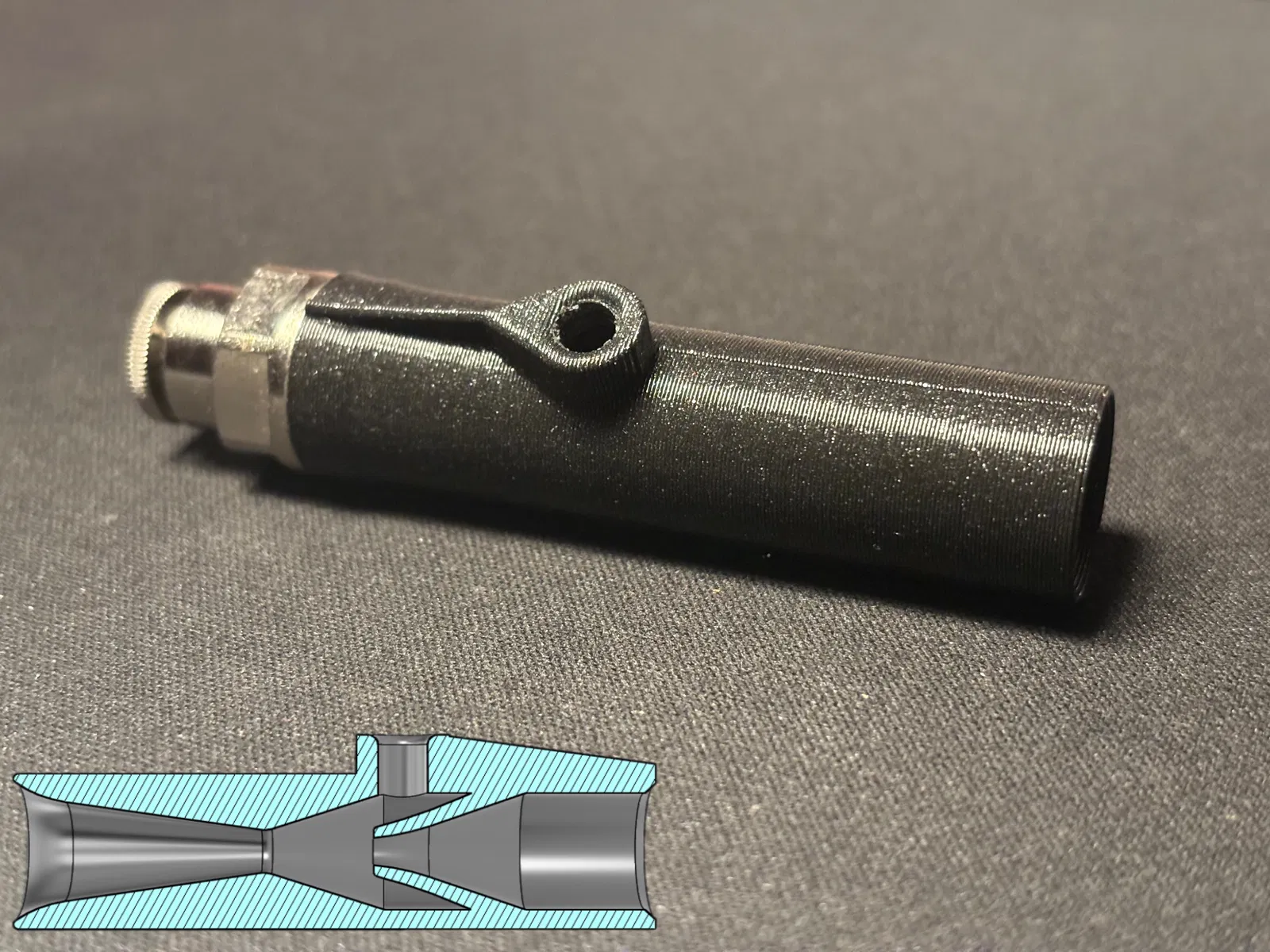 Vòi phun Venturi sử dụng khí nén hiệu quả, thiết kế in trực tiếp không cần support. Sản phẩm nhỏ gọn, phù hợp cho nhiều mục đích thí nghiệm và ứng dụng thực tế của anh em chơi in 3D.