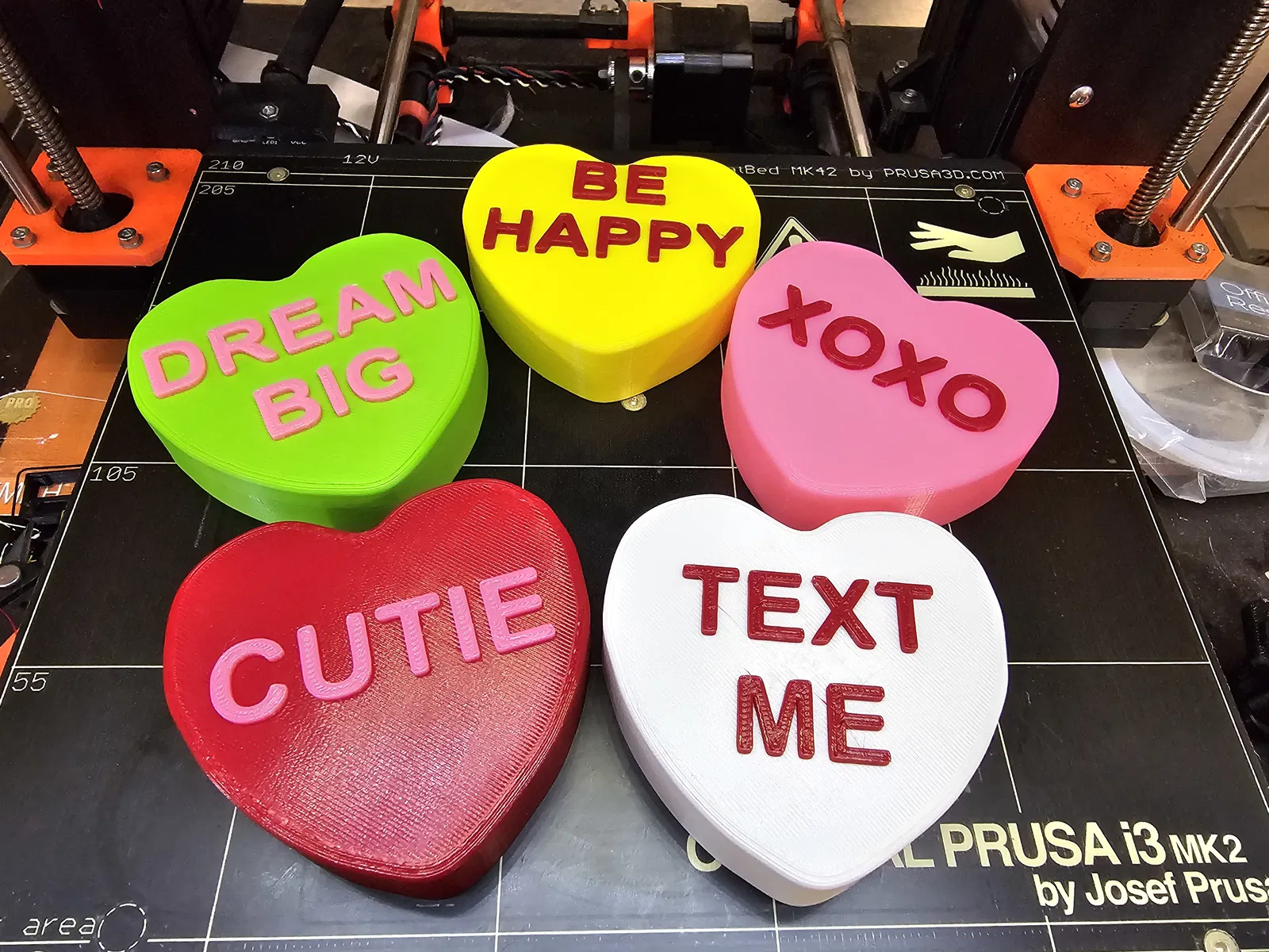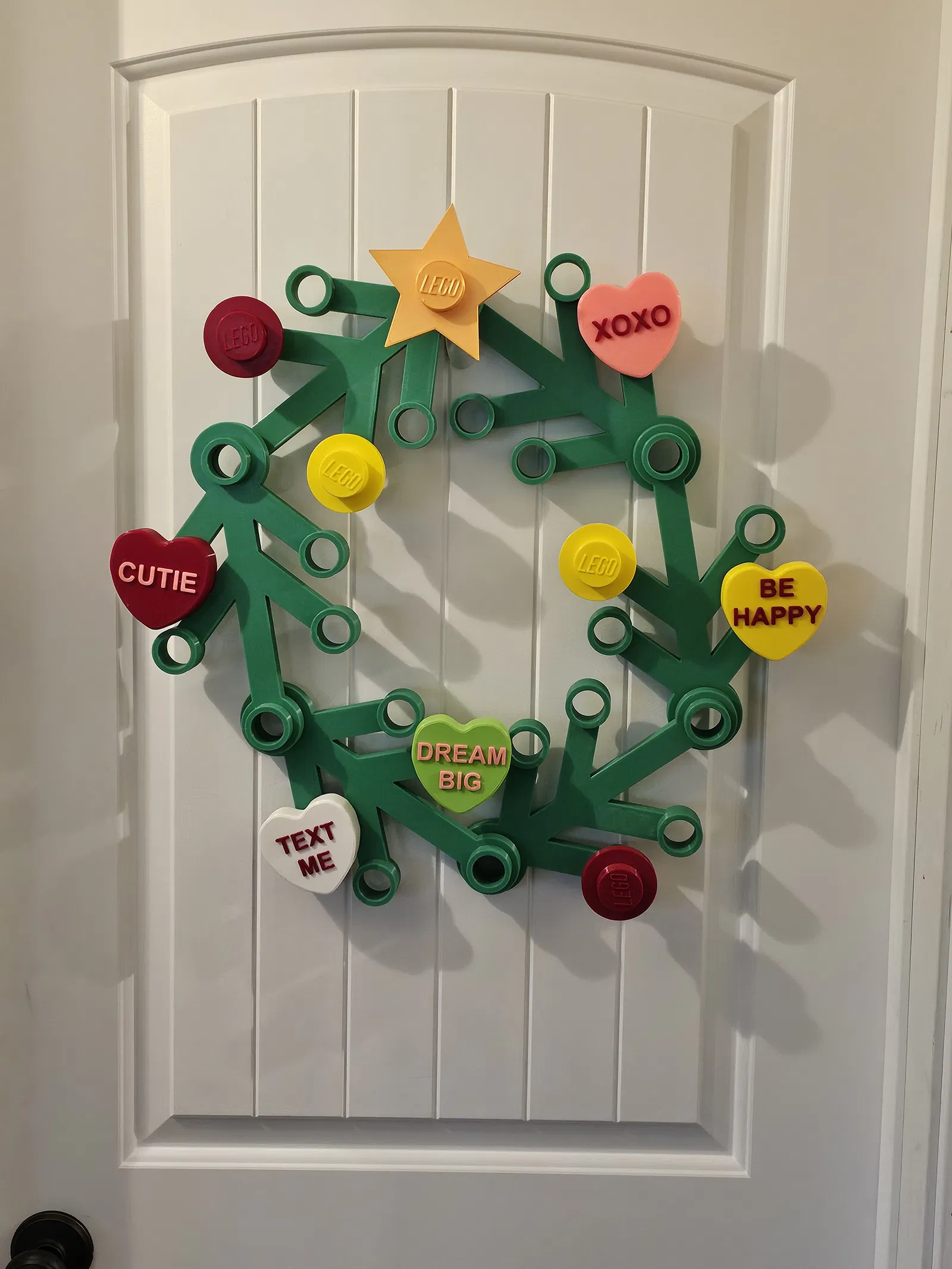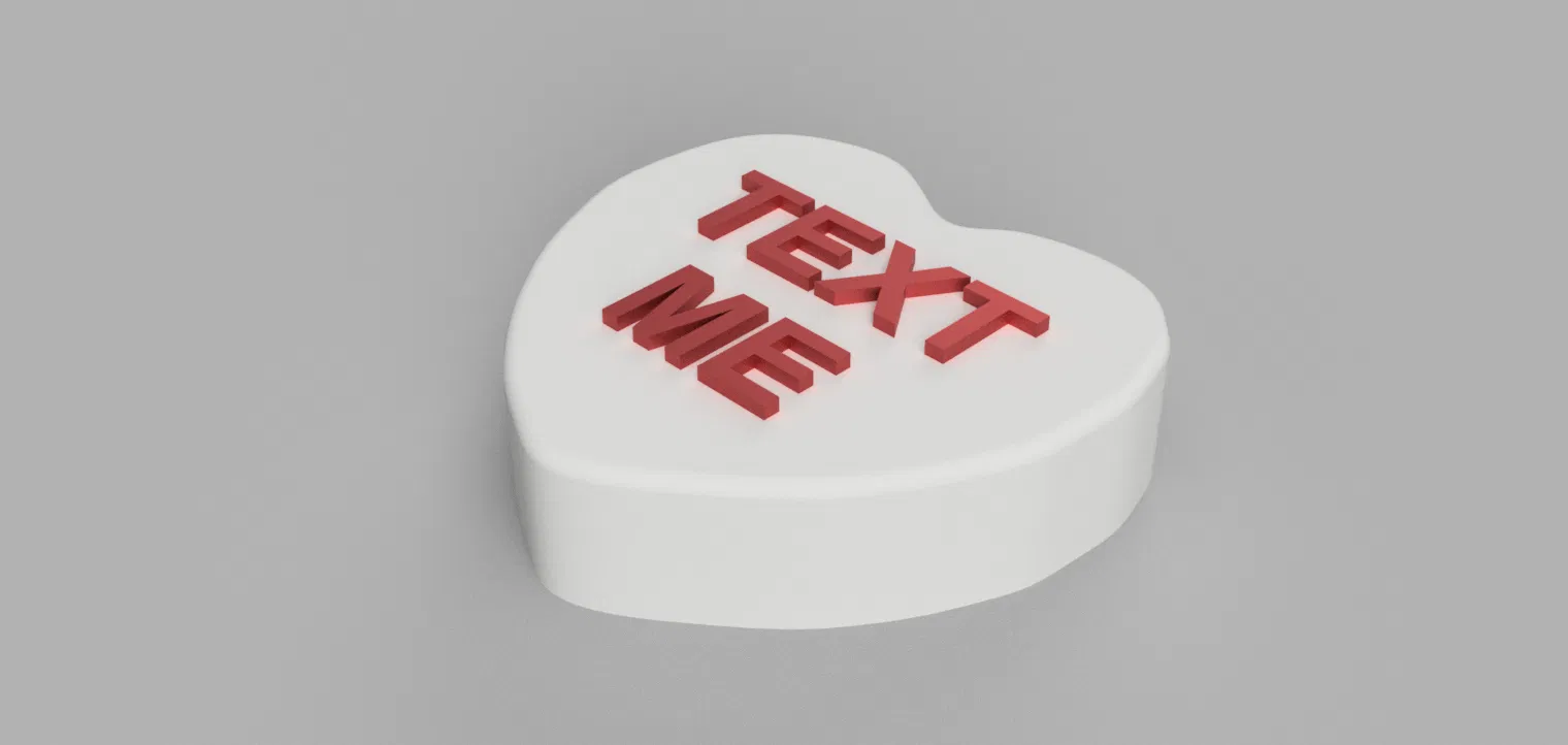 Mình đã in phiên bản 120% của chiếc vòng hoa Lego cho con gái dịp Giáng sinh và cả nhà thích đến mức không nỡ cất đi. Mình nghĩ sẽ rất hay nếu có thể trang trí nó cho các dịp lễ khác, thế là mình thiết kế mấy viên kẹo trái tim 'Conversation Hearts' này cho ngày Valentine. Có vẻ như mình không phải là người đầu tiên có ý tưởng này, nhưng mình vẫn đăng lên đây phòng khi nó giúp ích được cho ai đó. Mọi người lưu ý nhé, mình đã tùy chỉnh kích thước các viên kẹo này để vừa với stud 36.2mm vì mình in vòng hoa của bé ở tỉ lệ 120% so với kích thước gốc.