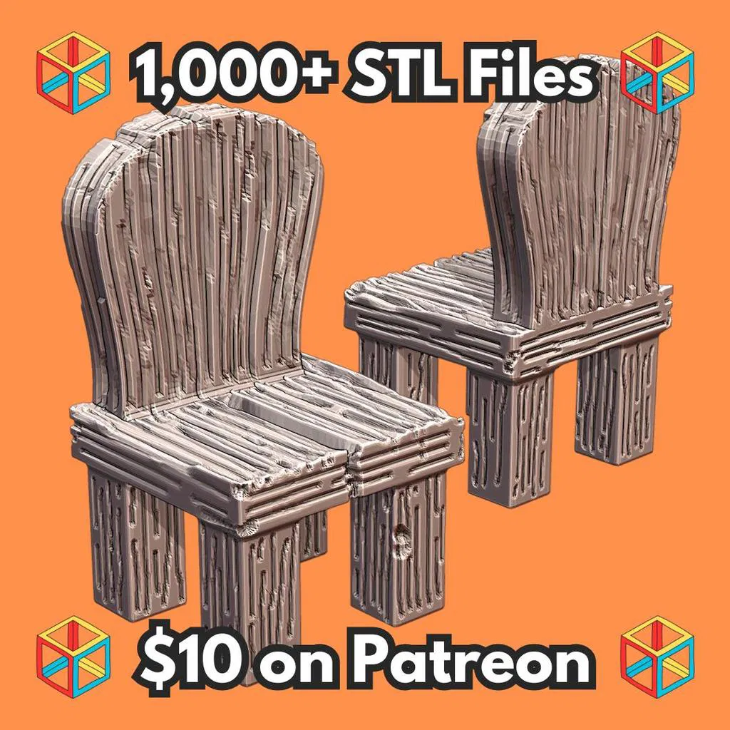 Mô hình ghế gỗ 28mm cho game D&D Fantasy Terrain (File STL)