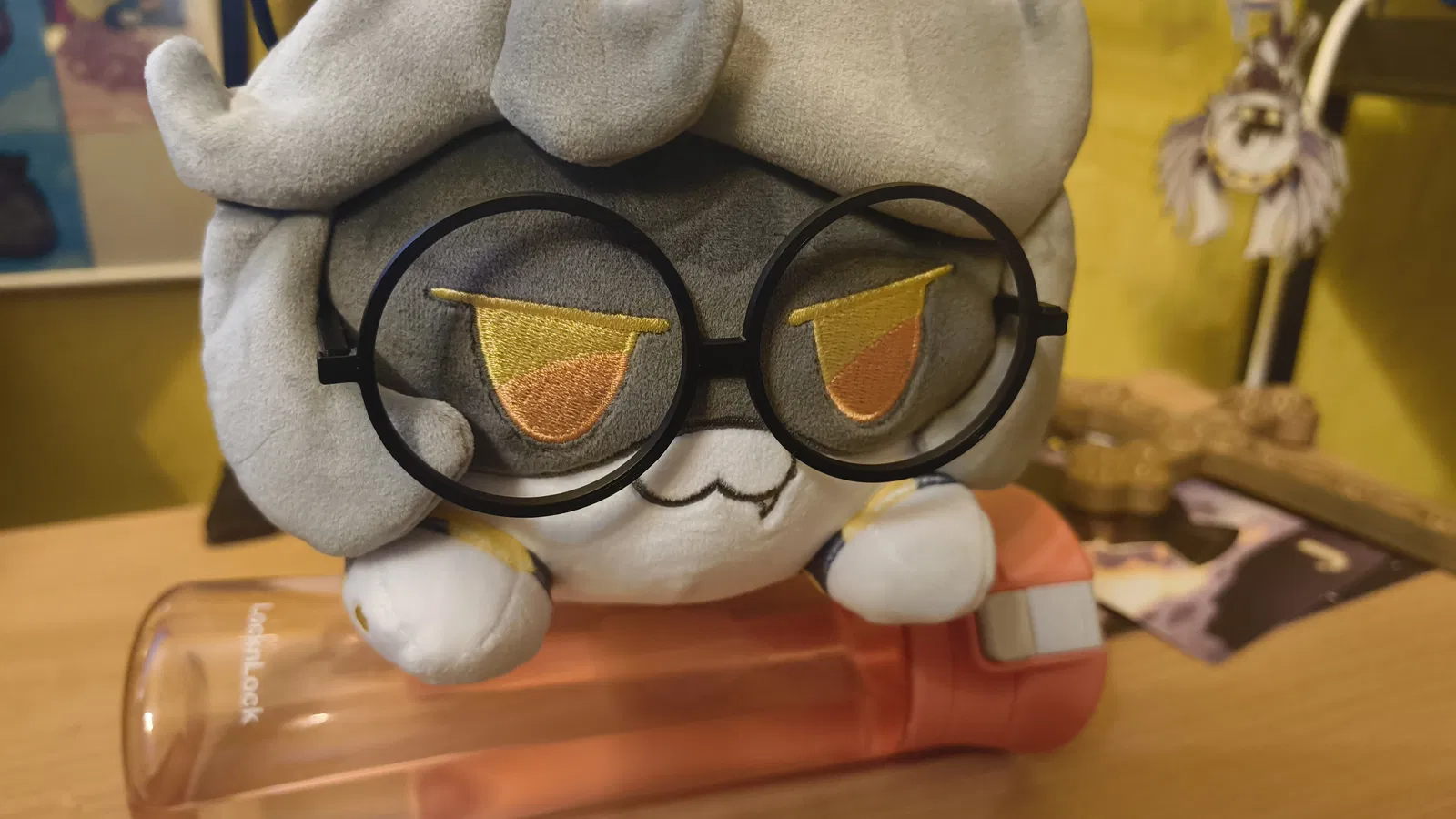 Mình thấy một bên kính nhỏ hơn bên kia khoảng 1-2mm. Không hiểu sao lúc trước mình không để ý, nhưng giờ mình đã sửa lại rồi, đồng thời thu nhỏ dung sai giữa kính và phần gọng xuống còn 0.1mm. Mình cũng làm cho chúng lớn hơn một chút để giảm ma sát, tránh làm phần gọng bị lỏng lẻo sau nhiều lần tháo lắp. Kích thước này cũng giúp kính vừa vặn với nhiều loại thú bông/fumo khác hơn (cả em Vat Vuck cũng đeo được luôn nè).