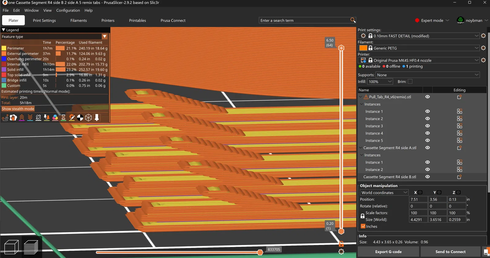 Mình xin chia sẻ link hai mẫu mình đã dùng để in các linh kiện cho bộ MMU3 trên máy MK4 của mình. Bản remix này có thể dùng được cho cả MMU2 hoặc MMU3, cũng như cho các đoạn (segment) R3 hoặc R4. Nhiều người in những mẫu này có phản hồi rằng họ phải bôi trơn linh kiện thì mới hoạt động trơn tru được. Mình thì không muốn phải thêm dầu mỡ hay mài giũa gì thêm cho các đoạn nối để máy chạy ổn định. Với bản remix phần lẫy kéo (pull tab) này, mình thấy thậm chí không cần phải cắt sợi nhựa theo góc lạ (tuy nhiên, bạn vẫn nên cắt cho chuẩn). Ở bản gốc, sợi nhựa của mình hay bị vướng vào phần tam giác nơi tiếp nhận lẫy kéo. Vì vậy, bản remix này bổ sung thêm một "đường dốc" vào lẫy kéo để hướng sợi nhựa đi qua phần gờ, giúp nó không bị mắc kẹt. Để việc đút sợi nhựa vào mượt mà hơn nữa, bạn chỉ cần chà nhám nhẹ đường dốc đó sau khi in xong. Giờ thì sợi nhựa không còn bị kẹt nữa rồi. Mình in với độ đặc (infill) 100%, không cần dùng support hay brim gì cả. Các bạn nhớ dùng nhựa PETG nhé.