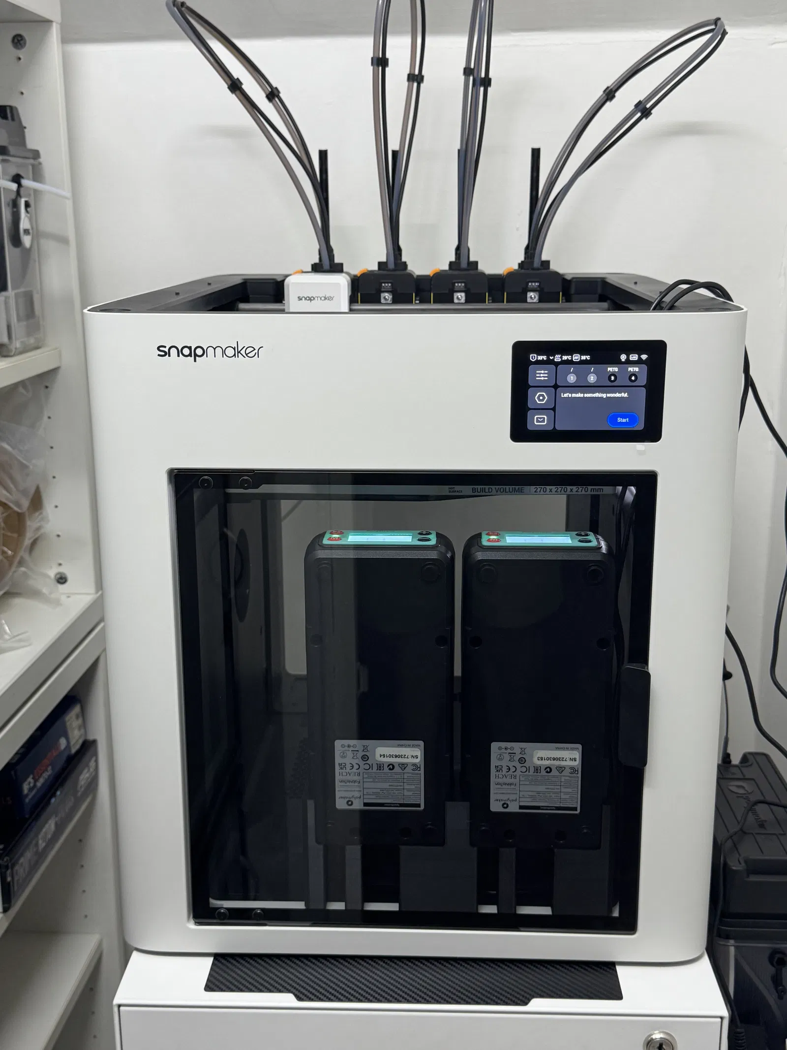 Chân đế dựng đứng dành cho PolyDryer/SnapDryer để tận dụng làm bộ sưởi buồng in cho máy in 3D Snapmaker U1. Thiết kế giúp tối ưu không gian, quản lý dây cáp gọn gàng và giữ màn hình hiển thị rõ ràng khi vận hành.