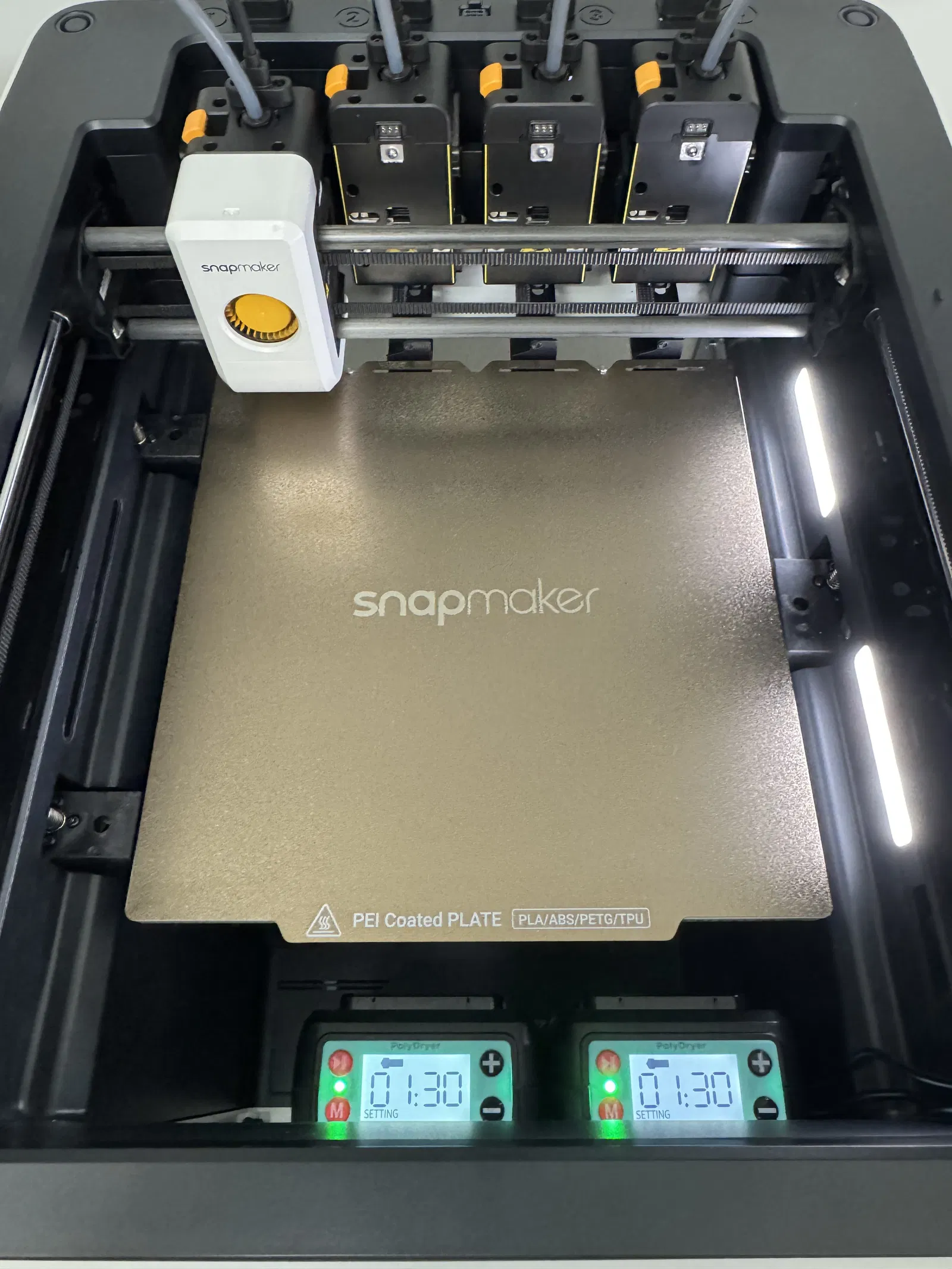 • Các thiết bị PolyDryer có tích hợp tính năng bảo vệ nhiệt và sẽ chuyển sang chế độ lỗi nếu nhiệt độ bên trong vượt quá khoảng 75°C. Khi tình trạng này xảy ra, thiết bị sẽ tự ngắt và bạn phải đặt lại bằng tay. Bạn nên theo dõi kỹ cài đặt để duy trì nhiệt độ dưới ngưỡng giới hạn này, đặc biệt là khi in các sản phẩm kéo dài.