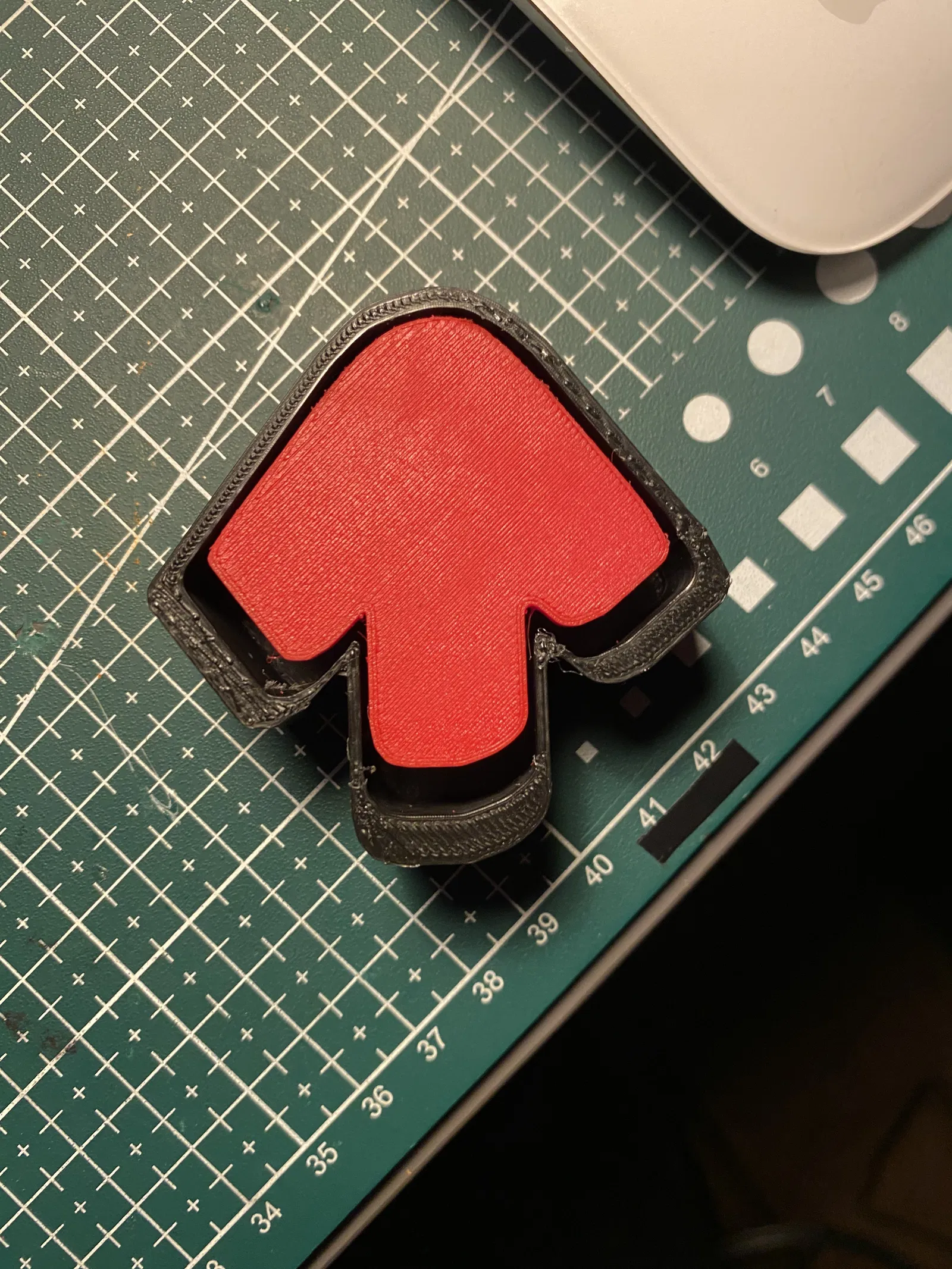 • Cấu tạo hai mảnh (khung và mũi tên) giúp bạn dễ dàng phối hợp màu sắc bằng cách sử dụng các sợi nhựa PLA khác nhau.