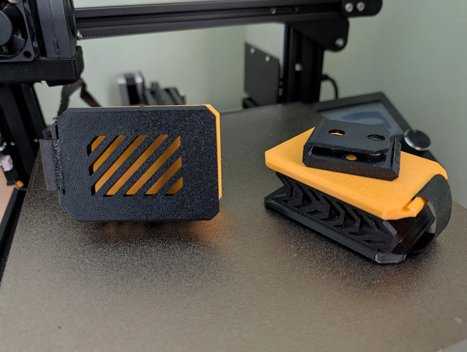 Các tấm panel trước và sau cần hỗ trợ (supports) cho khe cài dây đáy, dù rằng nếu hệ thống tản nhiệt của máy in tốt thì có thể không cần thiết. Nên in bằng PLA hoặc PETG, khuyến khích dùng loại có độ bám dính lớp tốt.