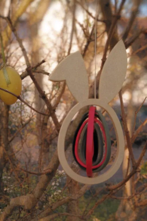 Đồ trang trí Lễ Phục sinh với hai kích thước khác nhau, có phần lõi bên trong xoay được. Bạn có thể gắn vào thanh (đường kính 15mm) hoặc treo lên.