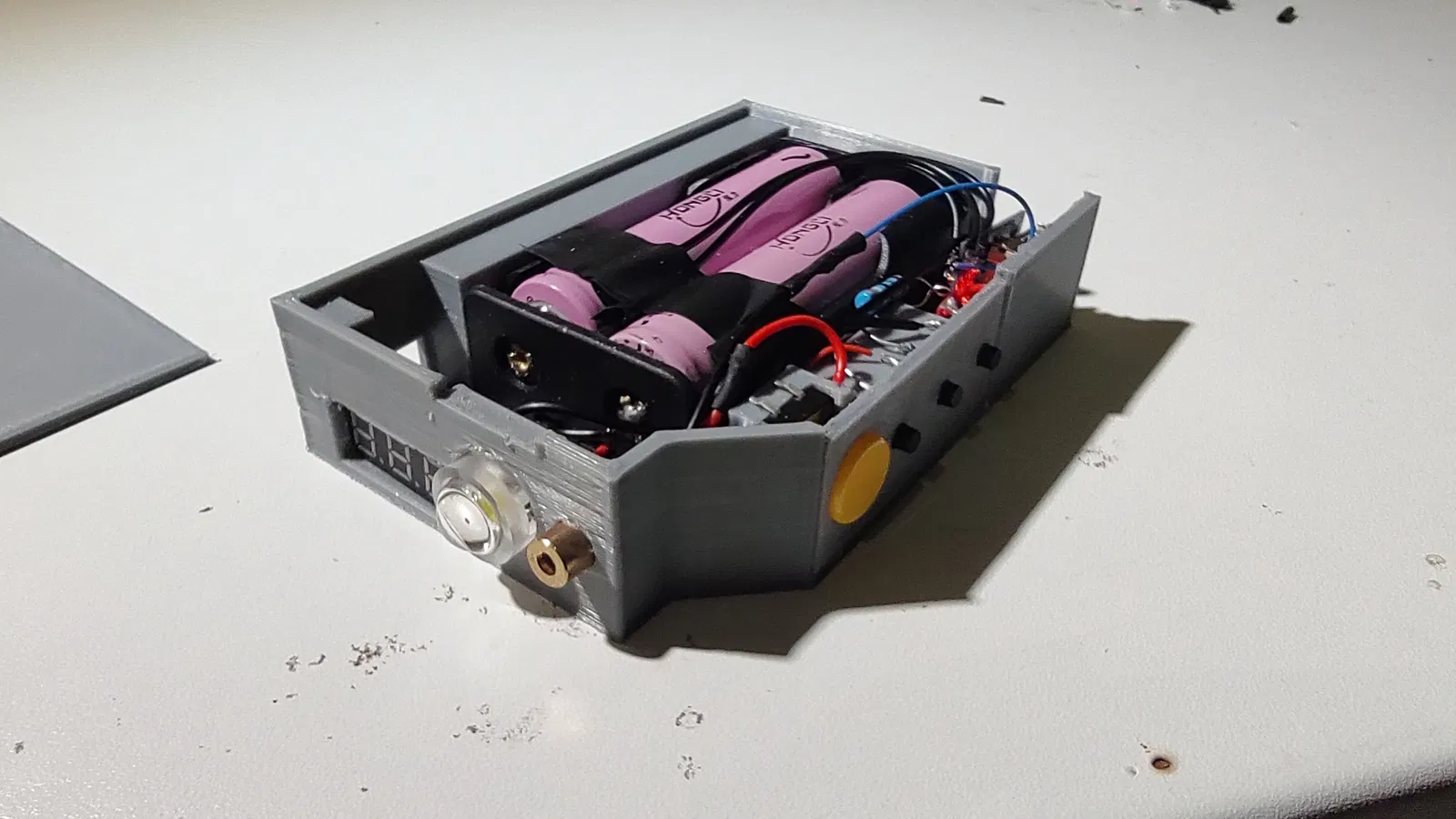 Đây là dự án mới nhất của mình: một chiếc súng EMP. Về cơ bản, nó giống như một cục sạc dự phòng sử dụng hai viên pin 18650 trong một trung tâm điều khiển duy nhất, nơi bạn có thể gắn thêm các mô-đun tùy chọn—ví dụ như súng EMP.