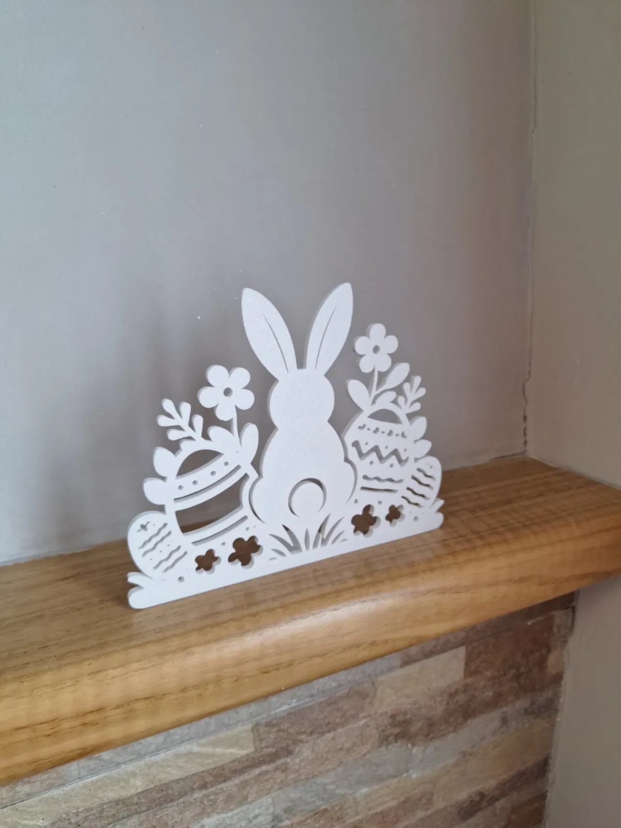 Mô hình trang trí Phục sinh dạng đứng với hình ảnh chú thỏ cách điệu cùng trứng và hoa. Thiết kế tinh tế, dễ in 3D, cực kỳ phù hợp để trang trí nhà cửa hoặc làm quà tặng mùa lễ hội.