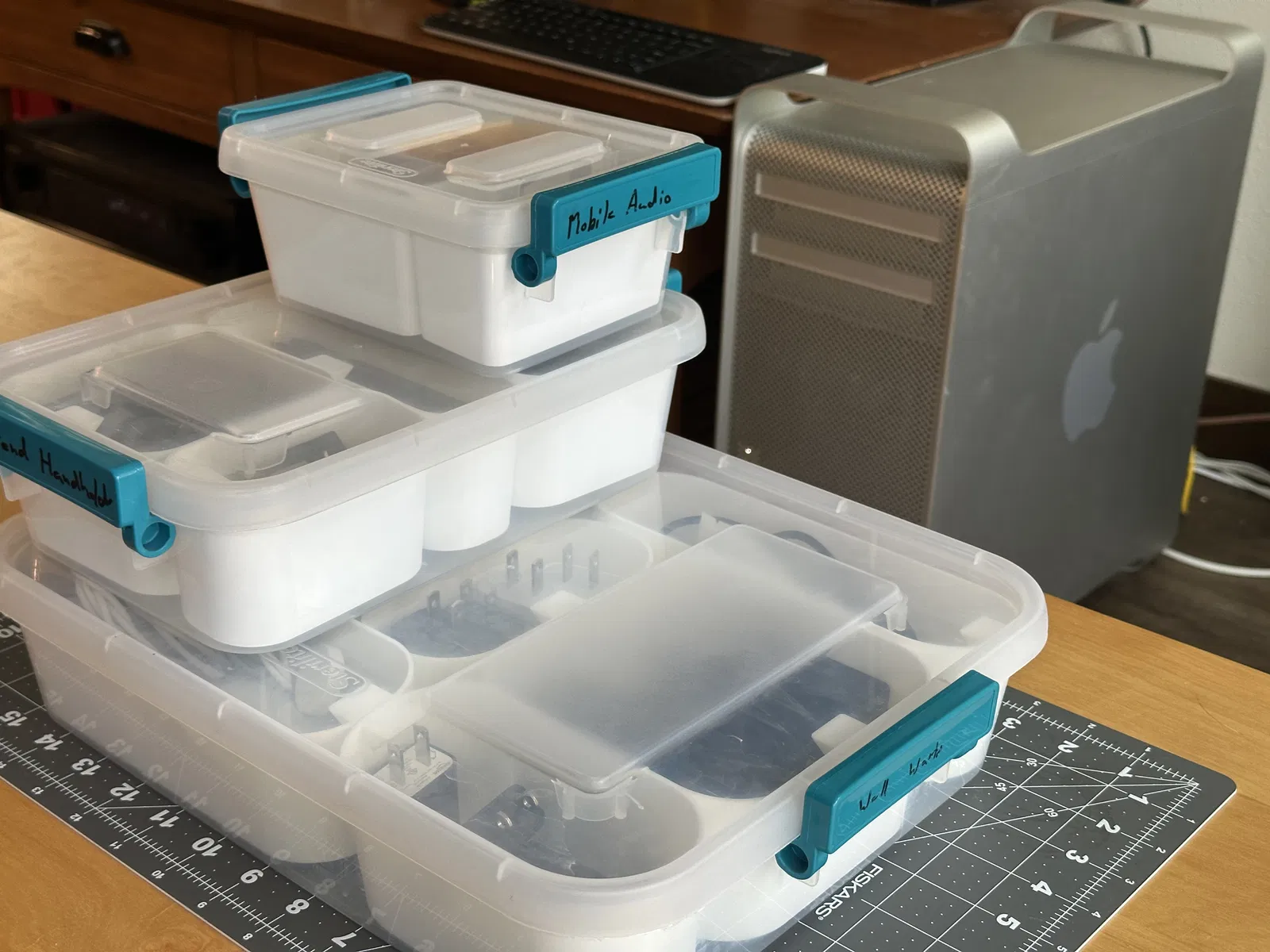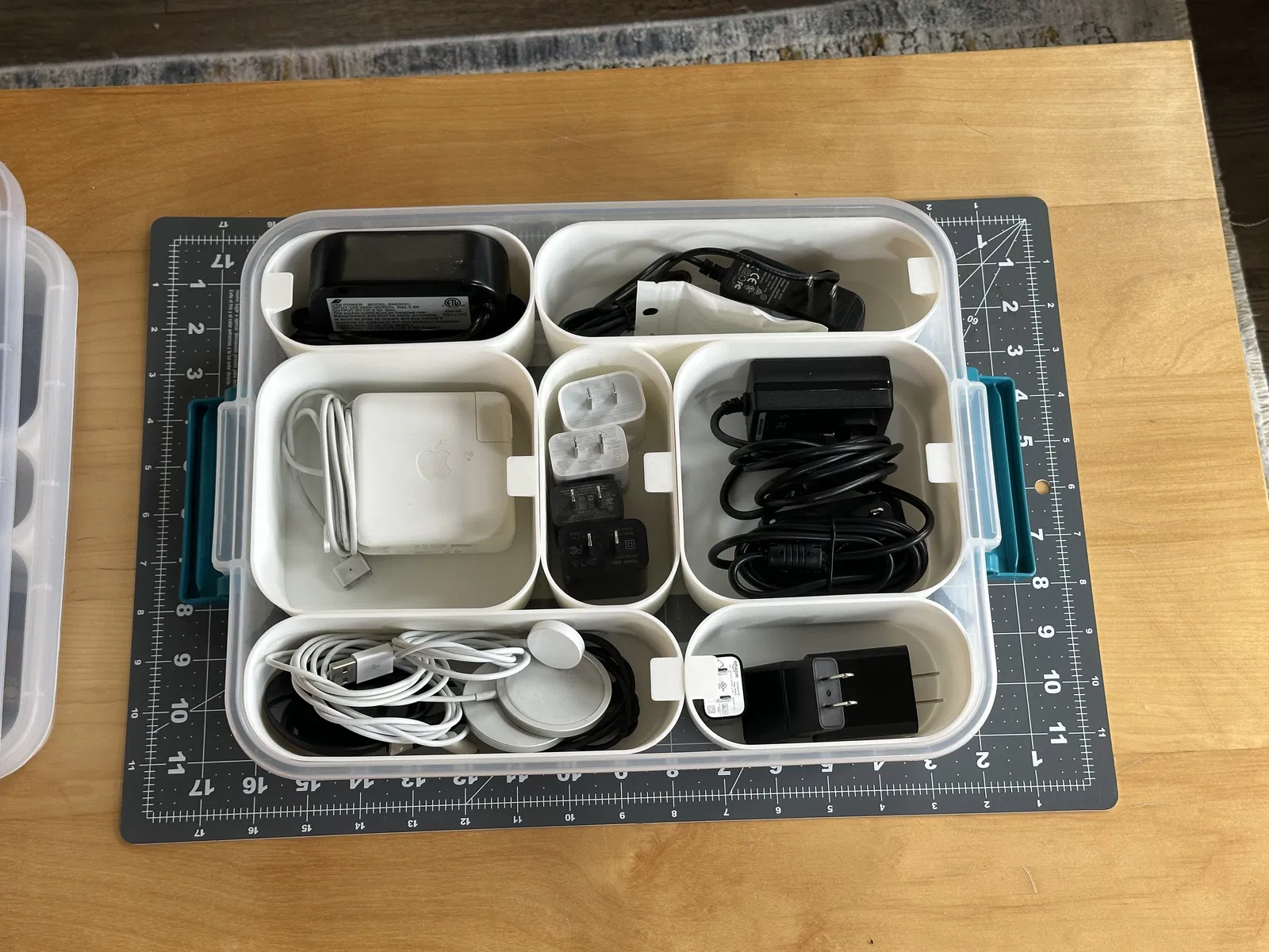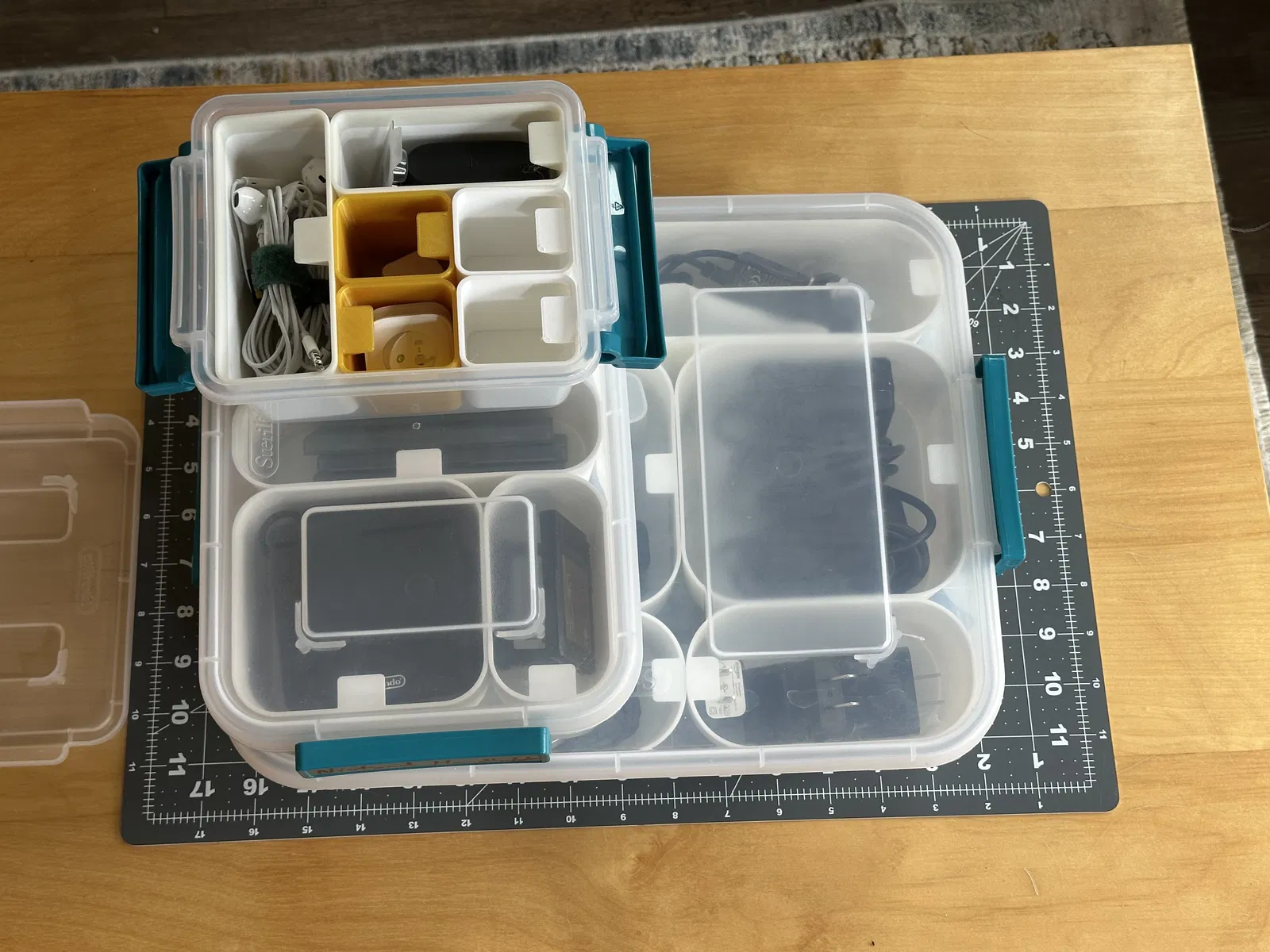 Đây là loại hộp có kích thước lớn nhất có thể chứa được các khay này. Mình dùng nó để phân loại mấy cục sạc (wall warts) linh tinh cho gọn gàng.