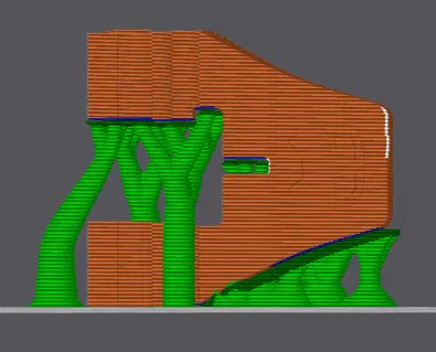 Khi in, mình khuyên các bạn nên đặt theo hướng như trong ảnh minh họa và sử dụng tree supports (hỗ trợ dạng cây) nhé.