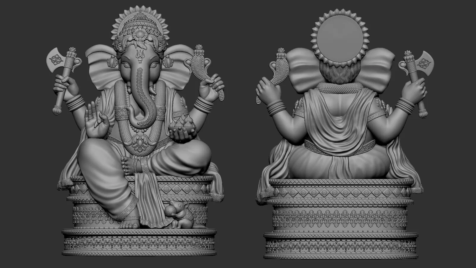 Mô hình 3D thần Ganesha (Ganpati) chi tiết sắc nét cho in 3D