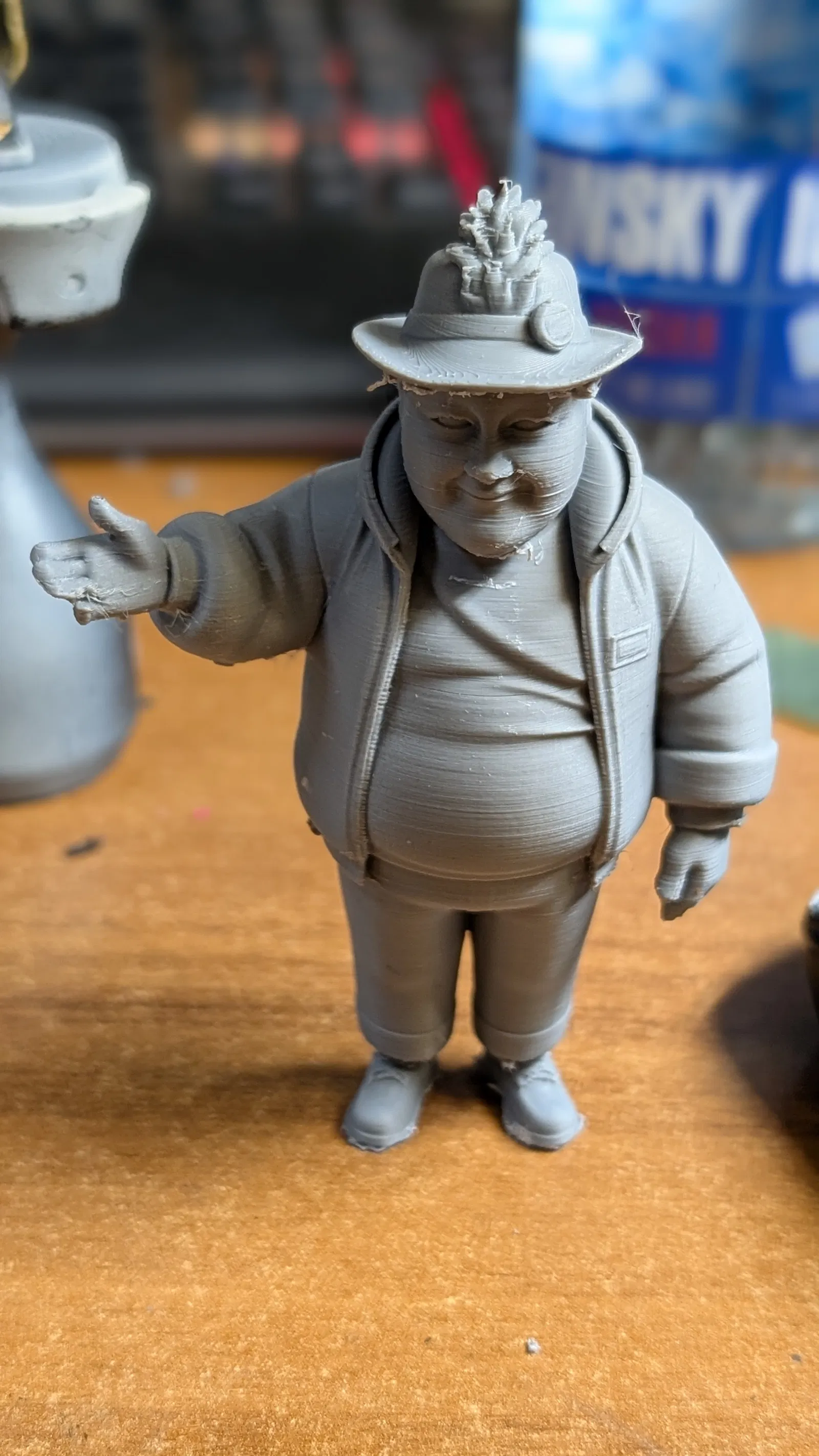 Chào các bạn đam mê in 3D, hôm nay mình xin giới thiệu đến các bạn một mô hình nhân vật vô cùng độc đáo và dễ thương. Đây là một mẫu tượng nhỏ mô phỏng hình ảnh một người đàn ông trung niên với vóc dáng tròn trịa, khoác trên mình chiếc áo khoác phong cách và đội chiếc mũ phớt điệu đà. Tư thế của nhân vật với cánh tay đưa ra như đang mời chào hoặc giới thiệu thứ gì đó khiến cho mô hình trở nên rất sống động và có hồn, tạo cảm giác thân thiện cho bất kỳ ai nhìn thấy.
