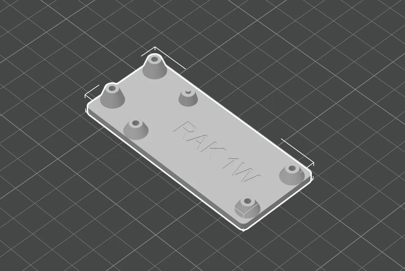 Cách sử dụng rất đơn giản: bạn chỉ cần in mẫu này ra, đặt mạch RAK 1watt lên các trụ đỡ có sẵn và vặn vít cố định. Sau đó, mặt dưới của tấm đế này sẽ đóng vai trò là một mặt phẳng tiếp xúc hoàn hảo để bạn dùng keo dán hoặc băng keo chuyên dụng cố định chặt vào thành vỏ hộp dự án của mình.