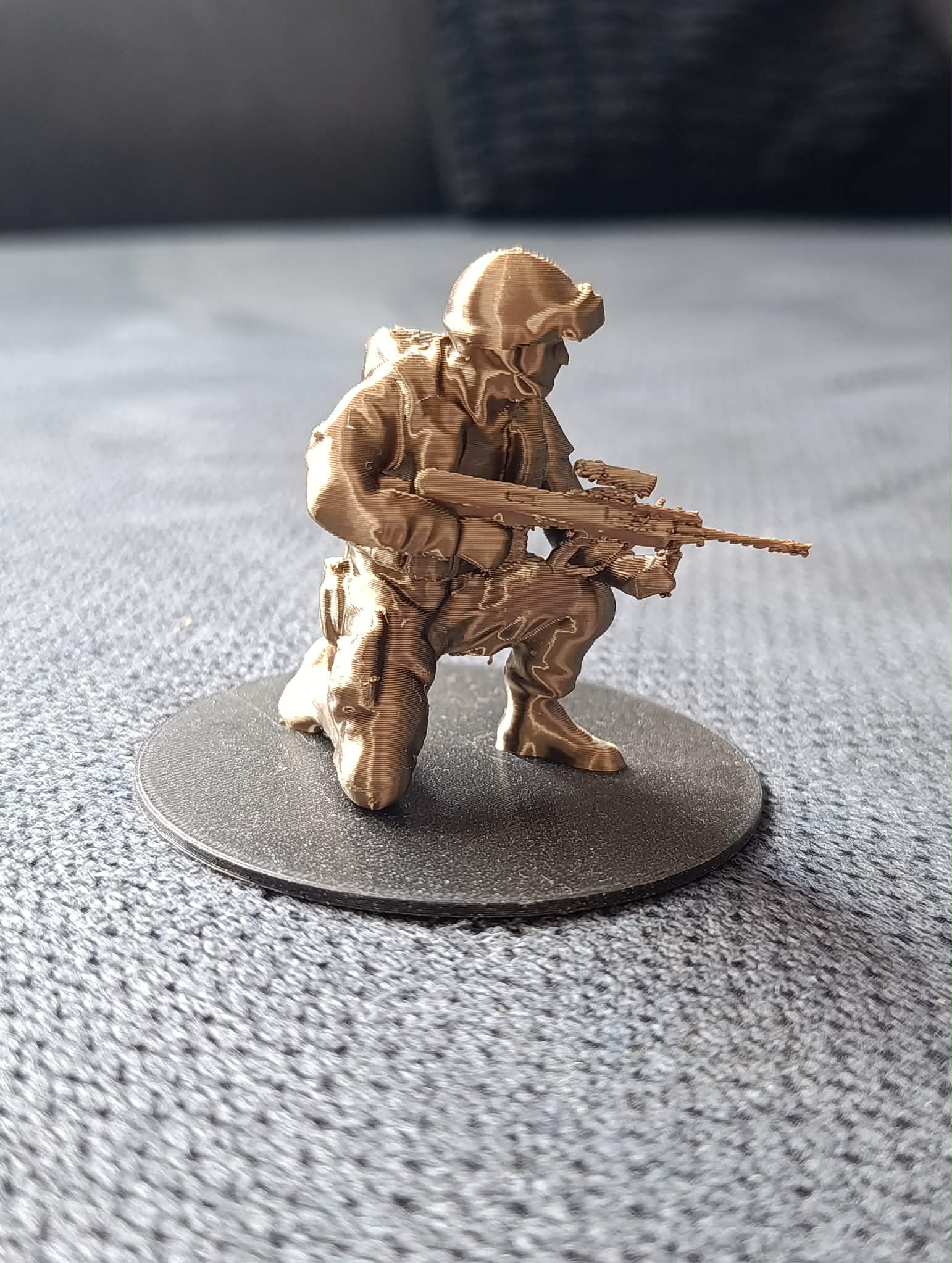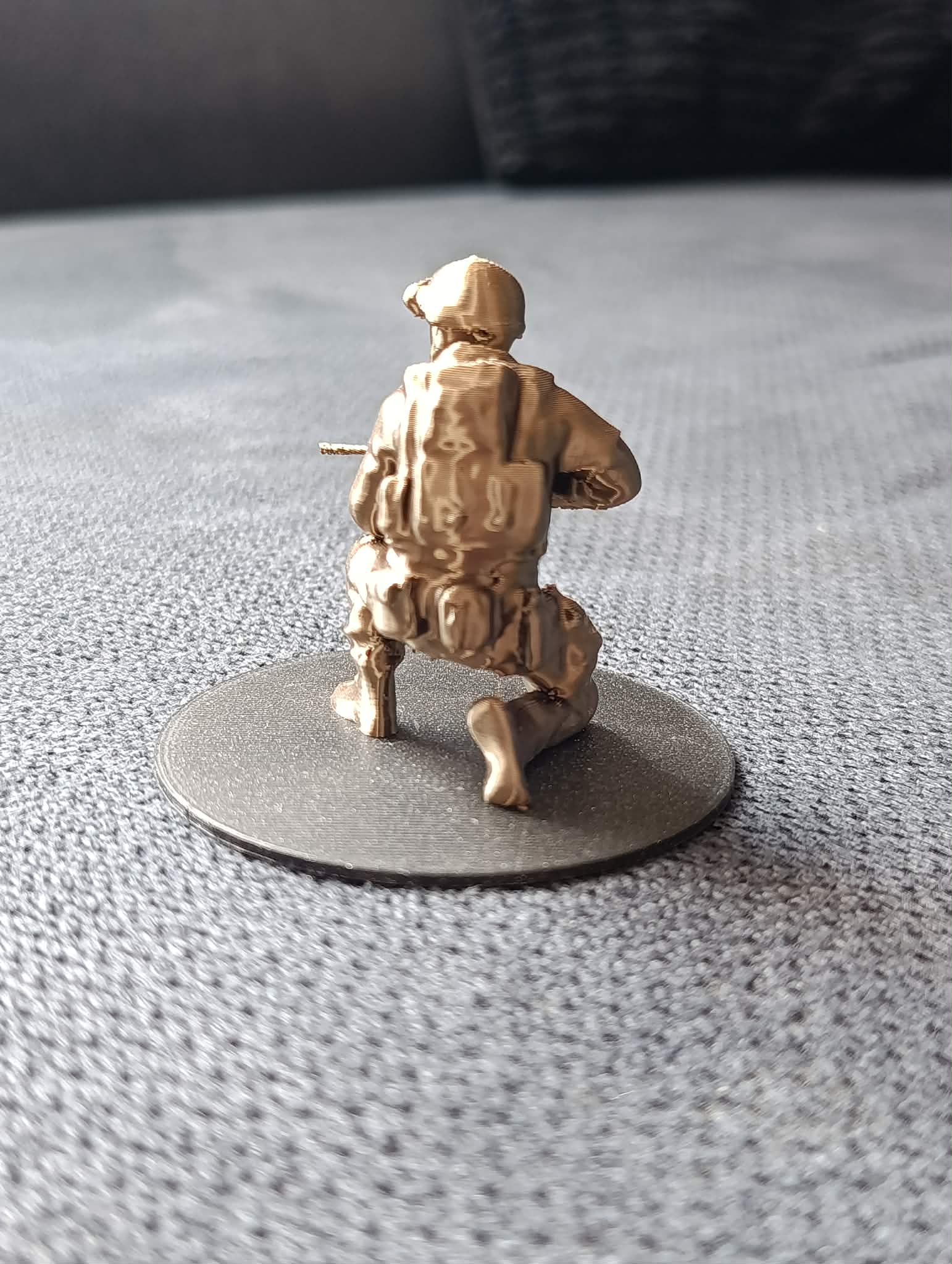 Mô hình Soldier v.1 là một tác phẩm mô phỏng nhân vật quân nhân trong tư thế quỳ bắn vô cùng sống động và sắc nét. Với chi tiết được thiết kế tỉ mỉ, từ bộ trang bị, mũ bảo hiểm cho đến vũ khí trên tay, đây là lựa chọn tuyệt vời cho những ai đam mê sưu tầm mô hình quân sự hoặc muốn trang trí không gian làm việc cá nhân thêm phần cá tính. Sản phẩm này không chỉ thu hút những người yêu thích 3D printing mà còn là món đồ chơi trưng bày lý tưởng cho các kệ tủ hoặc bàn học.