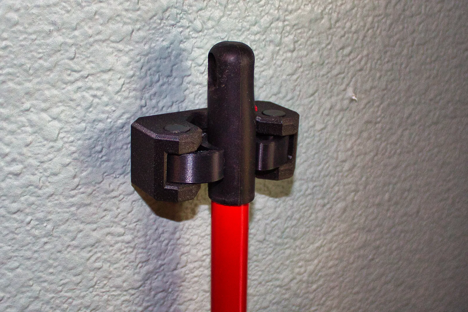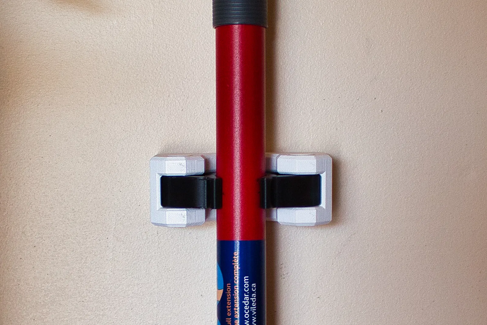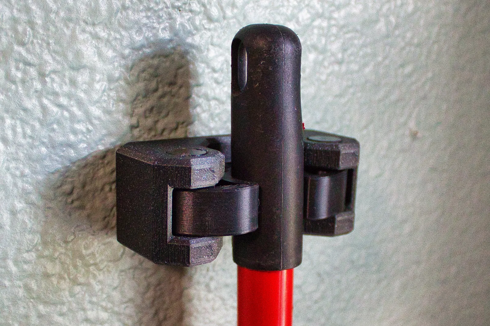 Giải pháp treo chổi thông minh với hàm kẹp linh hoạt giúp giữ chặt cán chổi khi đẩy vào. Hỗ trợ nhiều kích thước cán chổi khác nhau thông qua việc điều chỉnh tỉ lệ in (scale), đảm bảo độ bền cao và chắc chắn khi gắn lên tường.